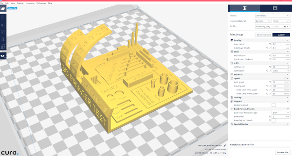 Opened the file in the slicer program Cura, created by Ultimaker.
