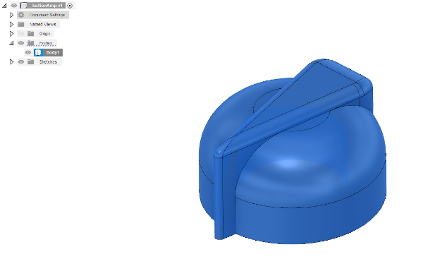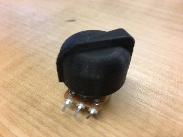 Looking at the button I printed it was clear that it was too small but the general look of it was nice. So I had to scale it up and design the hole in the button so it would fit on the potentiometer I'm planning to use.