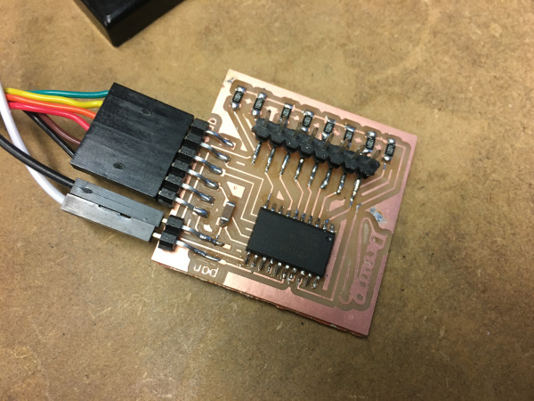 I milled my bard and soldered the components on it, then I added 3 pins to my “old” ATtiny board.
