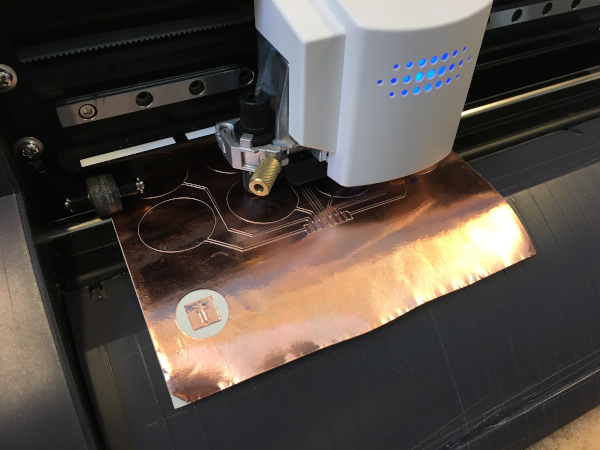 Next I made a simple sound pad using copper foil that I cut with the vinyl cutter.