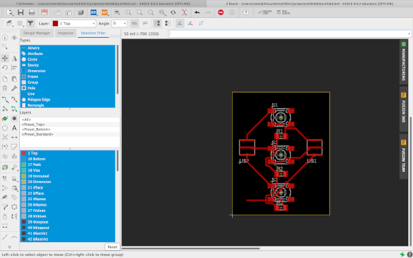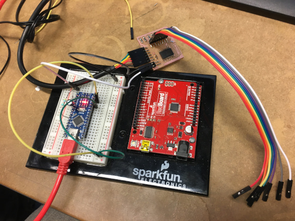 I milled the board and soldered all the components. Then I connected it with Arduino Nano to program it and I it worked.
