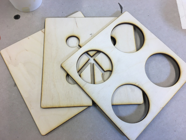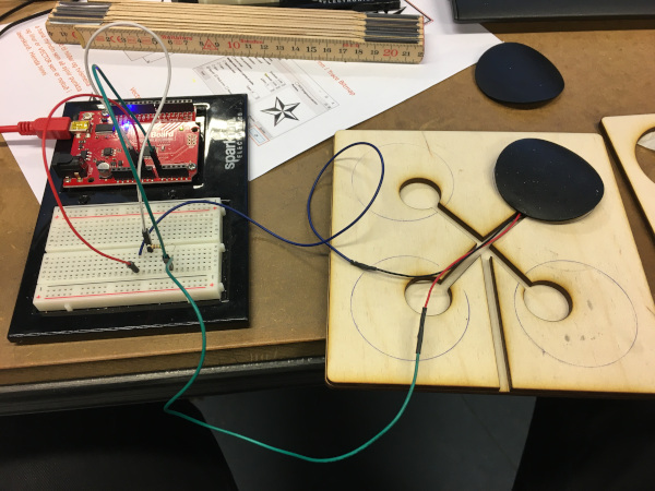 I used the laser cutter to make a casing for the drum pad but I did not assemble it. Placing rubber pads on top of the Piezo vibration sensors did not give me accurate reading. It will need more elaborate design to get it accurate. I did some testing with the Arduino and drumming on the pads worked but sometimes it gave me few readings with only on knock on the pad and sometimes it did not read the knock at all.