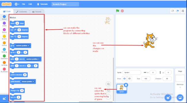 Scratch is a block-based visual programming language and website targeted primarily at children. Users of the site can create online projects using a block-like interface. Scratch is effective software for making games in this we can choose the sprite that is character for the application and can write the block programming.