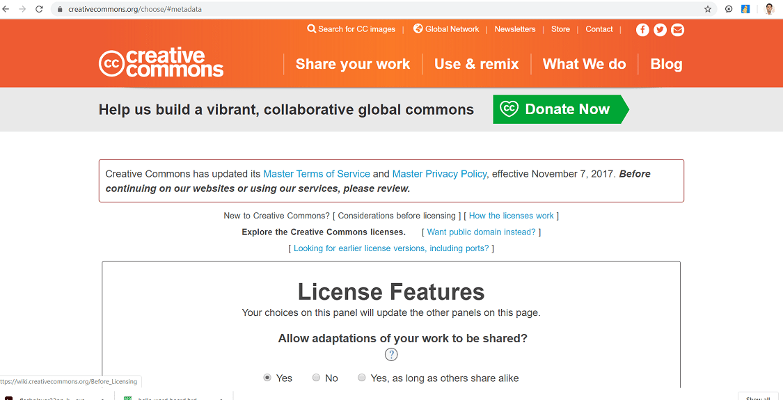 So here I am selecting Attribution-NonCommercial(CC BY-NC) Licence. Following are the steps to obtain this license