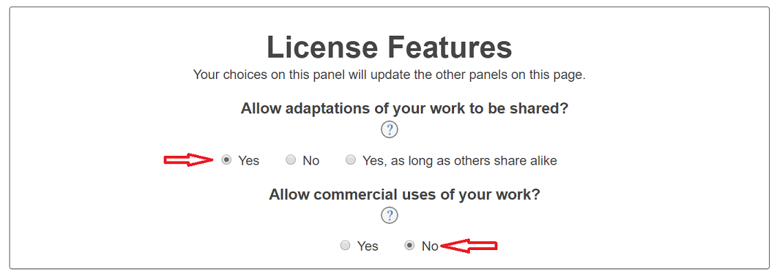 Step2: Select the License Features. Here I am permitting for use/refer my work but not for commercial use.