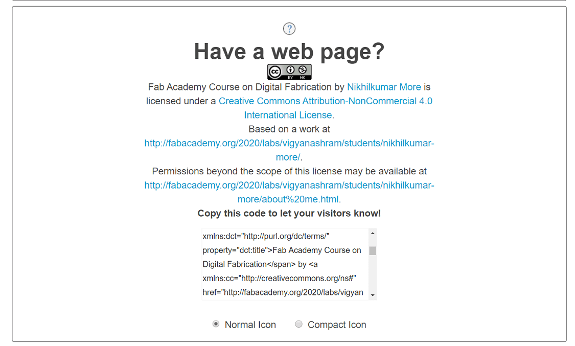 Fab Academy Course on Digital Fabrication by Nikhilkumar More is licensed under a Creative Commons Attribution-NonCommercial 4.0 International License.
