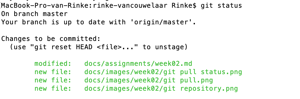 In this first week it was hard for me to keep track. Not bvecaus of the pace but because of the new subject and lack of context. For instance furder on I write wat I did to generate the SSH Key, but I don’t know when you have to generate an SSH key.