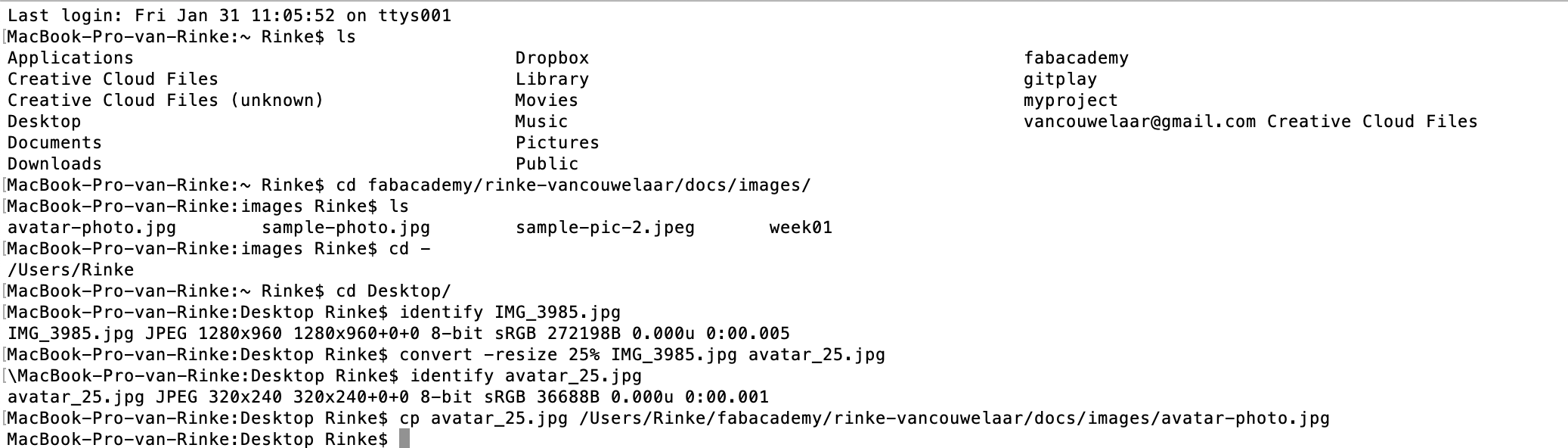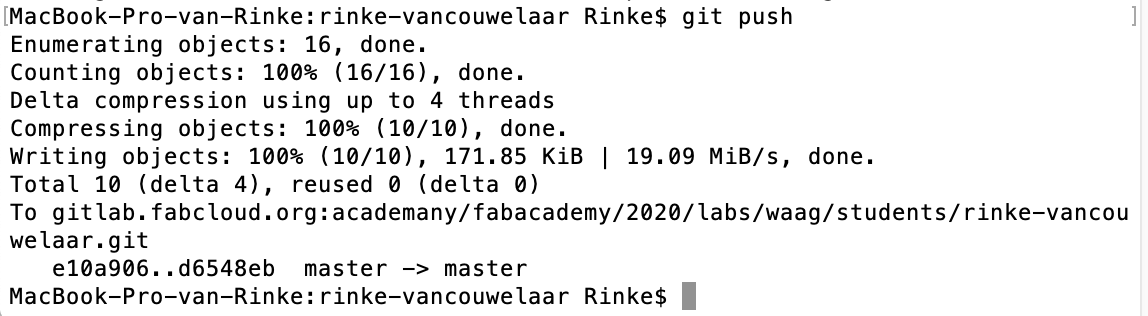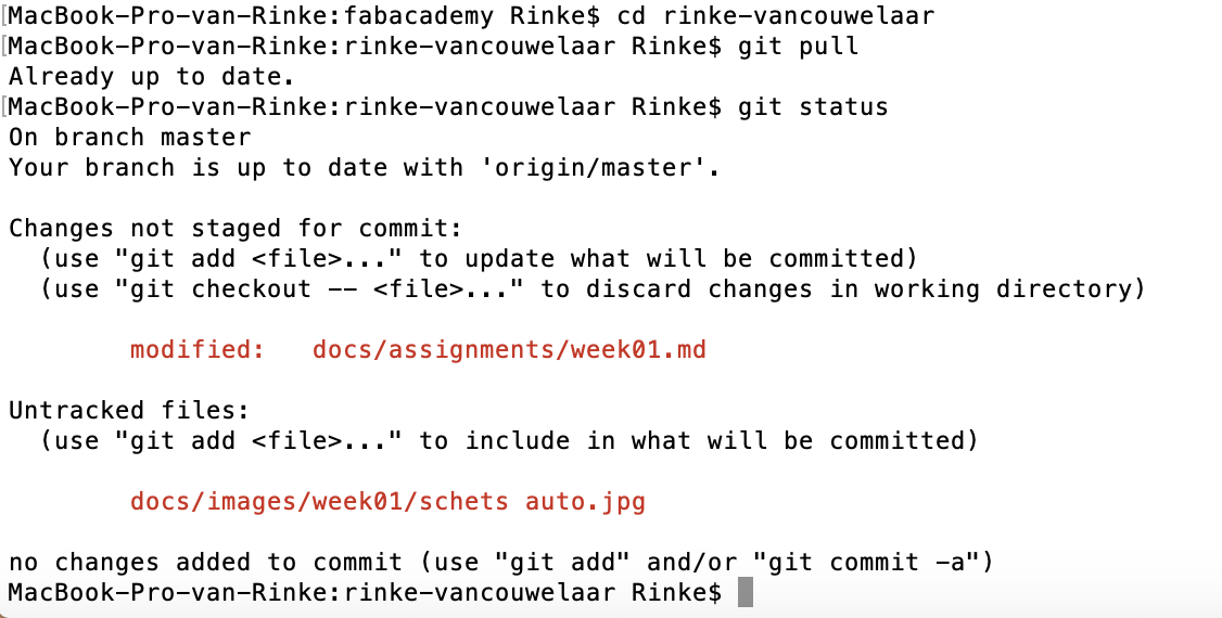 Type: ‘cd fabacademyrinke-vancouwelaar’ This takes you (me) to the repository
