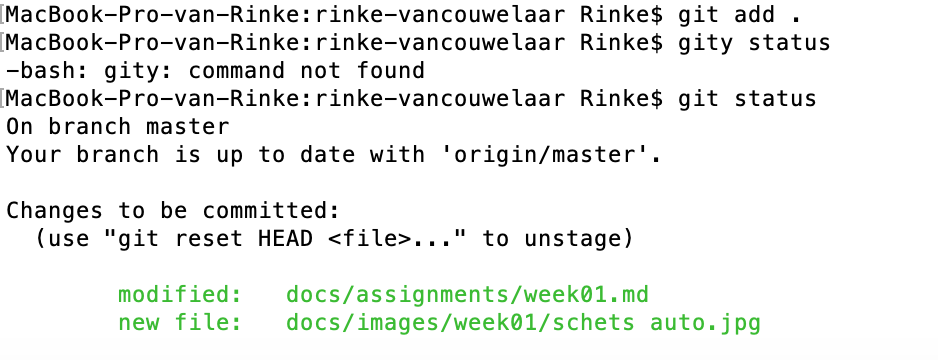 It is my assumption that the following line in the md-file will place the photo on my website: (../images/week01/schets auto.jpg)