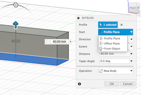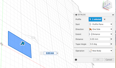 After Finish Sketch I could do the extrusion. At first I picked the wrong point to extrude from and almost all of the top of the car was gone.