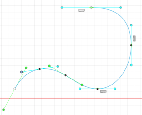 With Spline you can draw curves. Create a line with 2 or more dots by clicking with Spline. Everu dot will have to handles. You can use hem to change the curves.