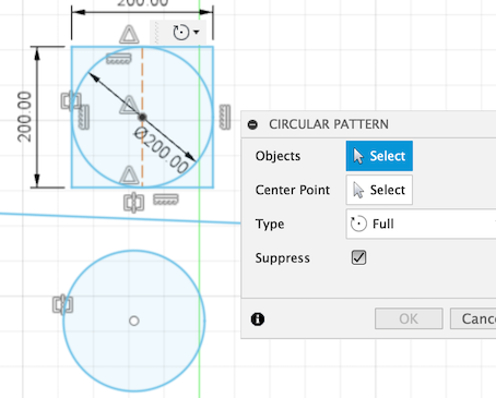 Remember to make the cicle wide enough, otherwise the cylinder won’t be extruded completely. Remember to click on the right plane to extrude from.