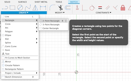 From the Create menu I took the Centre Rectangle and drew the front window from the centre.