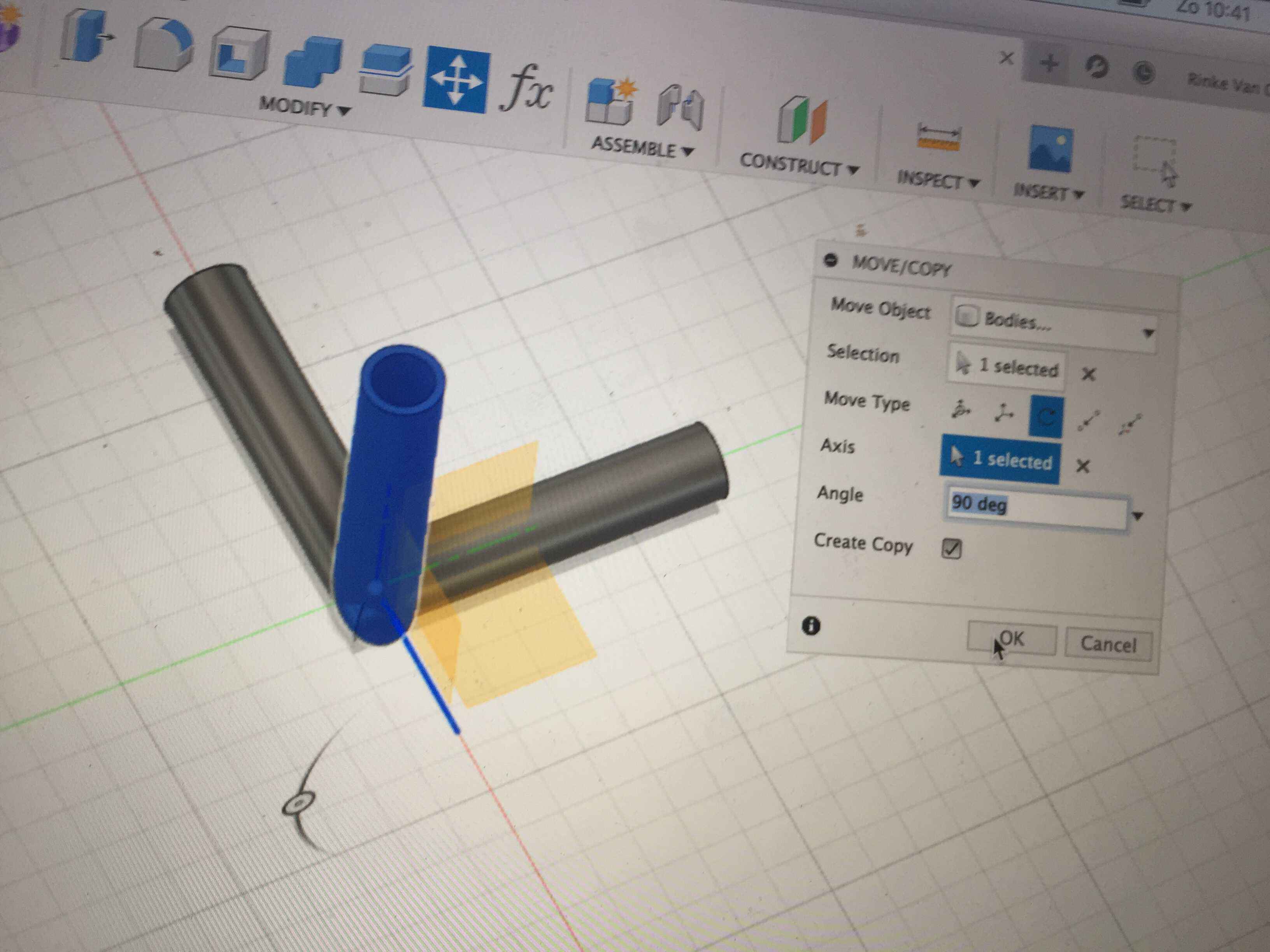 With Move/Copy I could make the third tube. I turned it 90º verticaly.