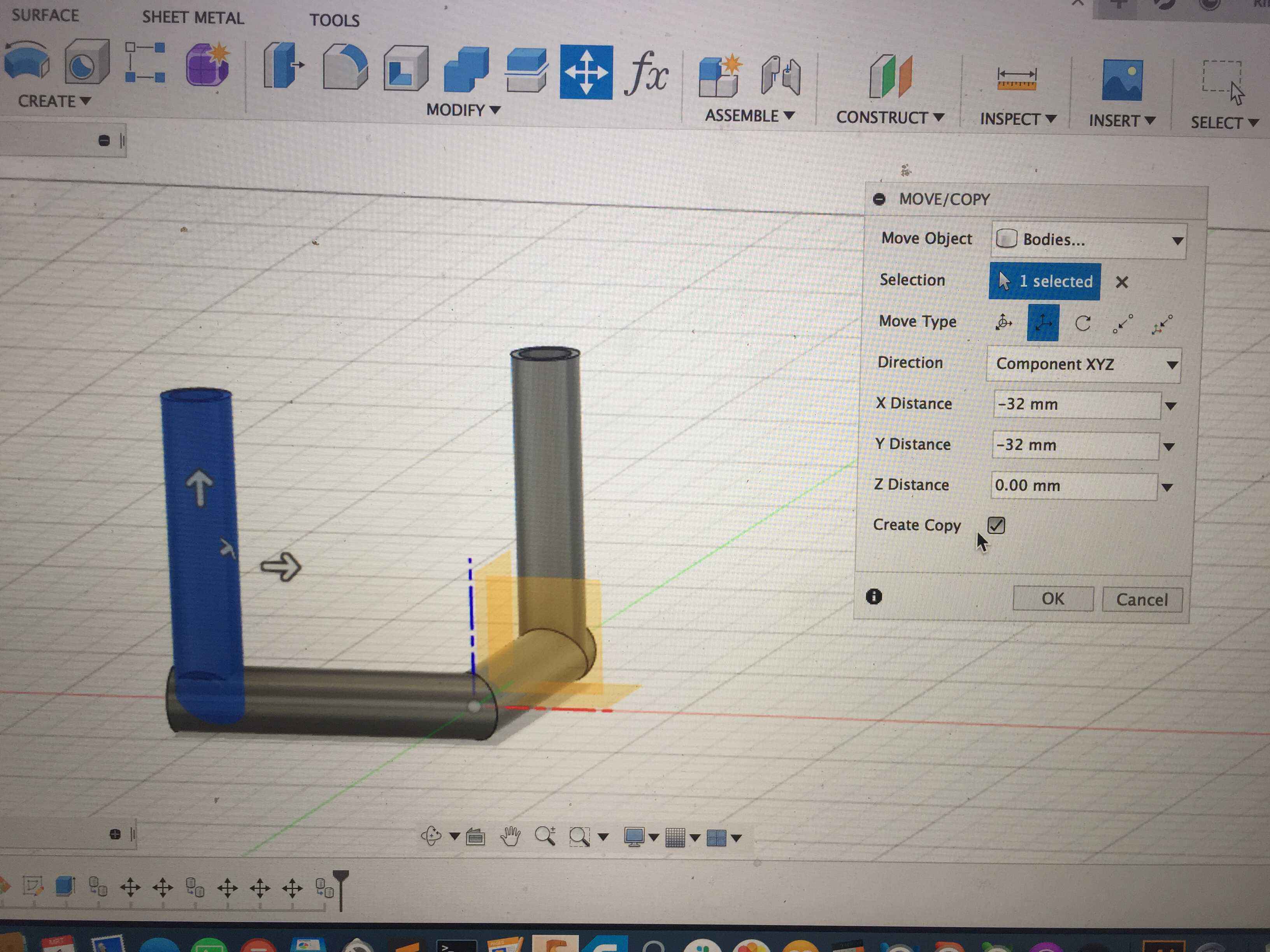 Then I did the same Move/Copy operation described above, but with -32 mm on the X and Y axis.