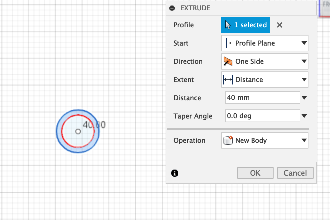 Ater that I extruded the circles by 40 mm to get a tube.