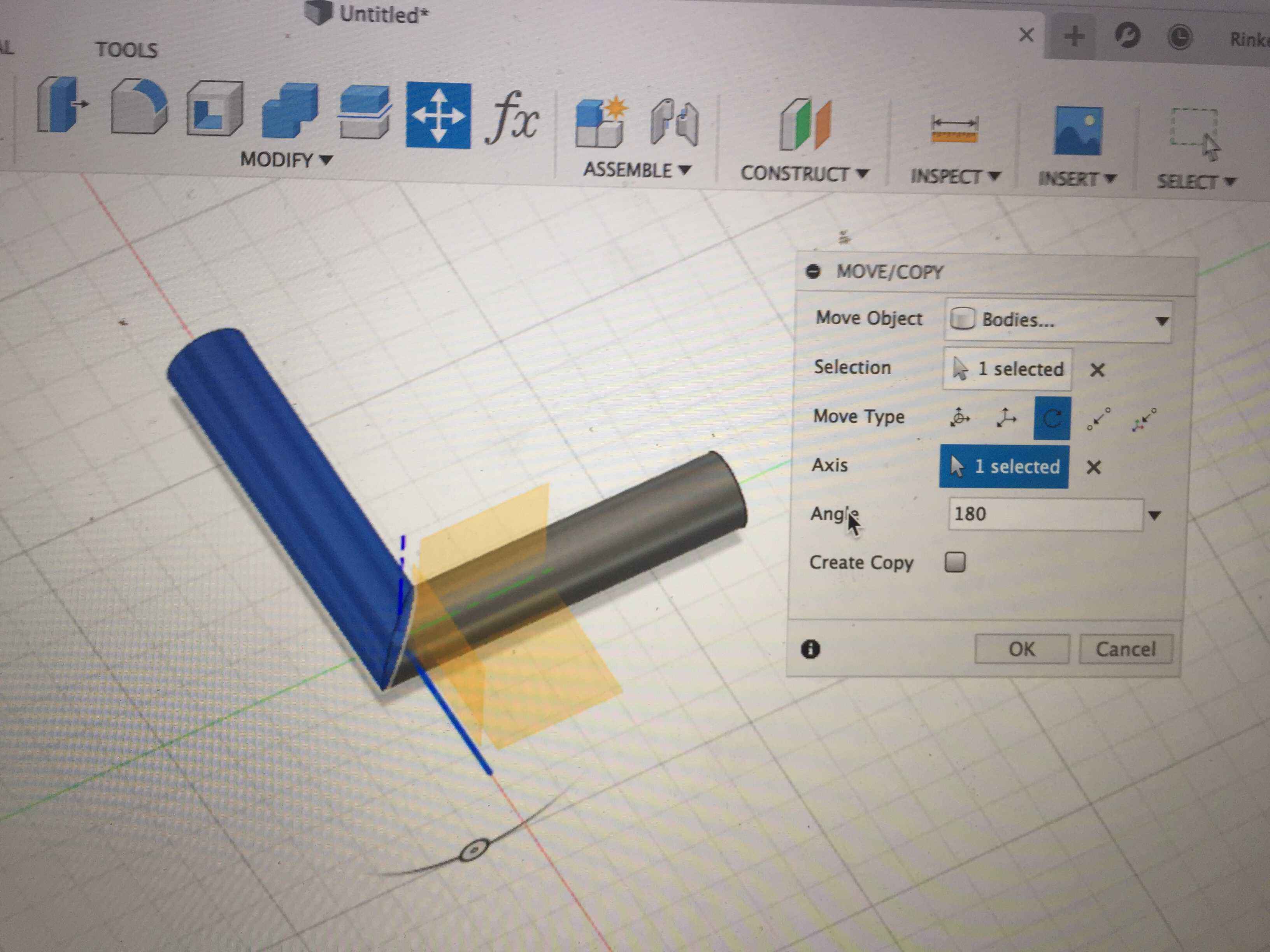 With Move/Copy I could make the second tube and I placed it in a 90º angle on the end of the first tube.