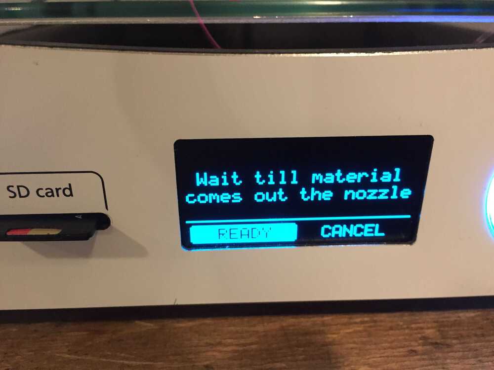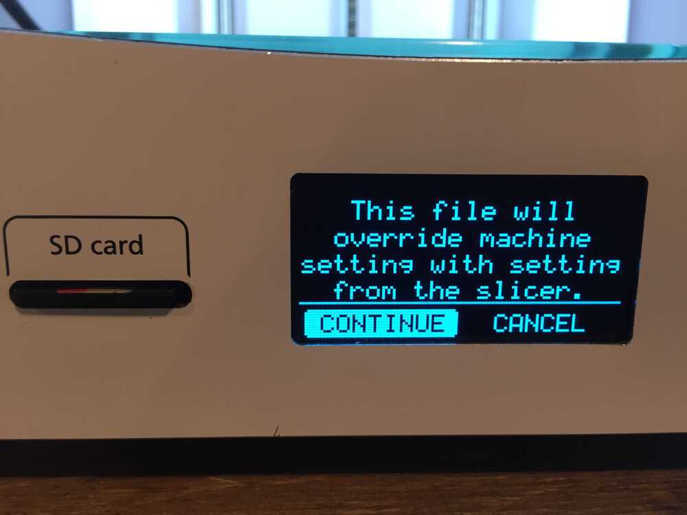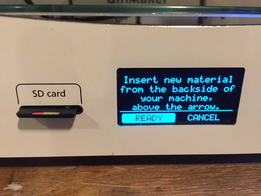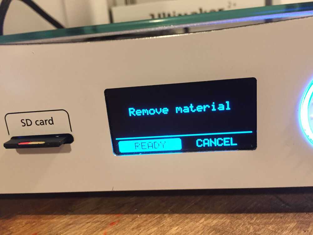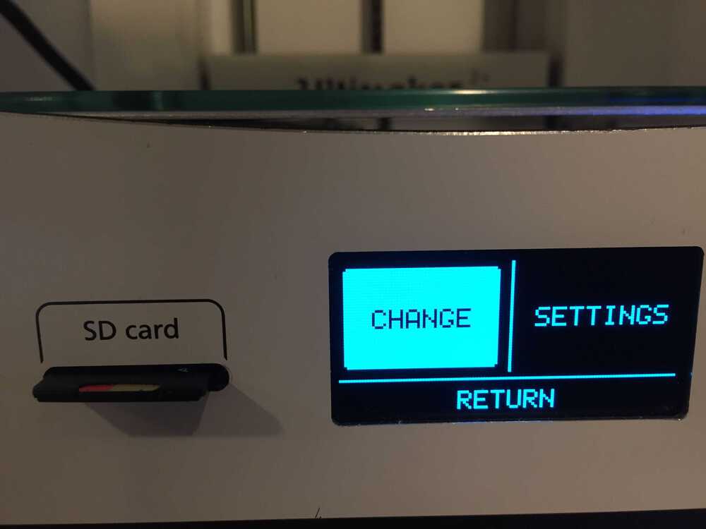 I wanted to send the file from the SD card to the printer so I selected Import from SD. I got a message that no file was found. I did not notice that I was in the material menu and not in the printer menu. Next time read the display better.