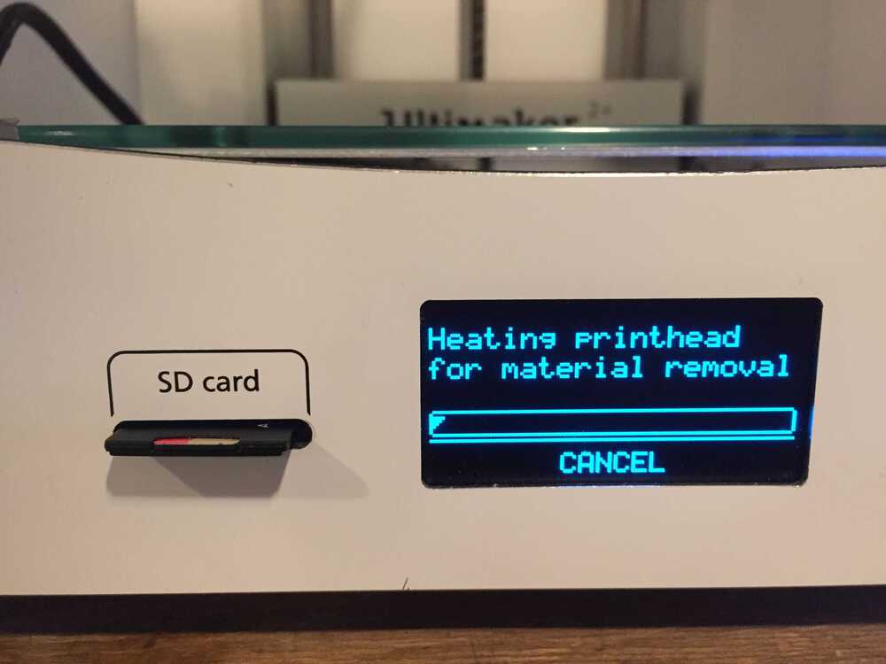 The printer heats up the nozzle so that the filament can be changed