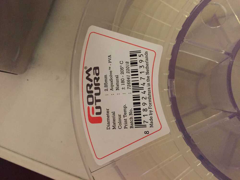 I should haved noticed that the material was not PLA but PVA. I made a big mistake there. PLA needs a temperature of 215º and PVA needs 185 - 205º . I should have looked better on the lable of the spool so I could have chosen the right temperature. During the printing I adjusted the temperature via Tuning.