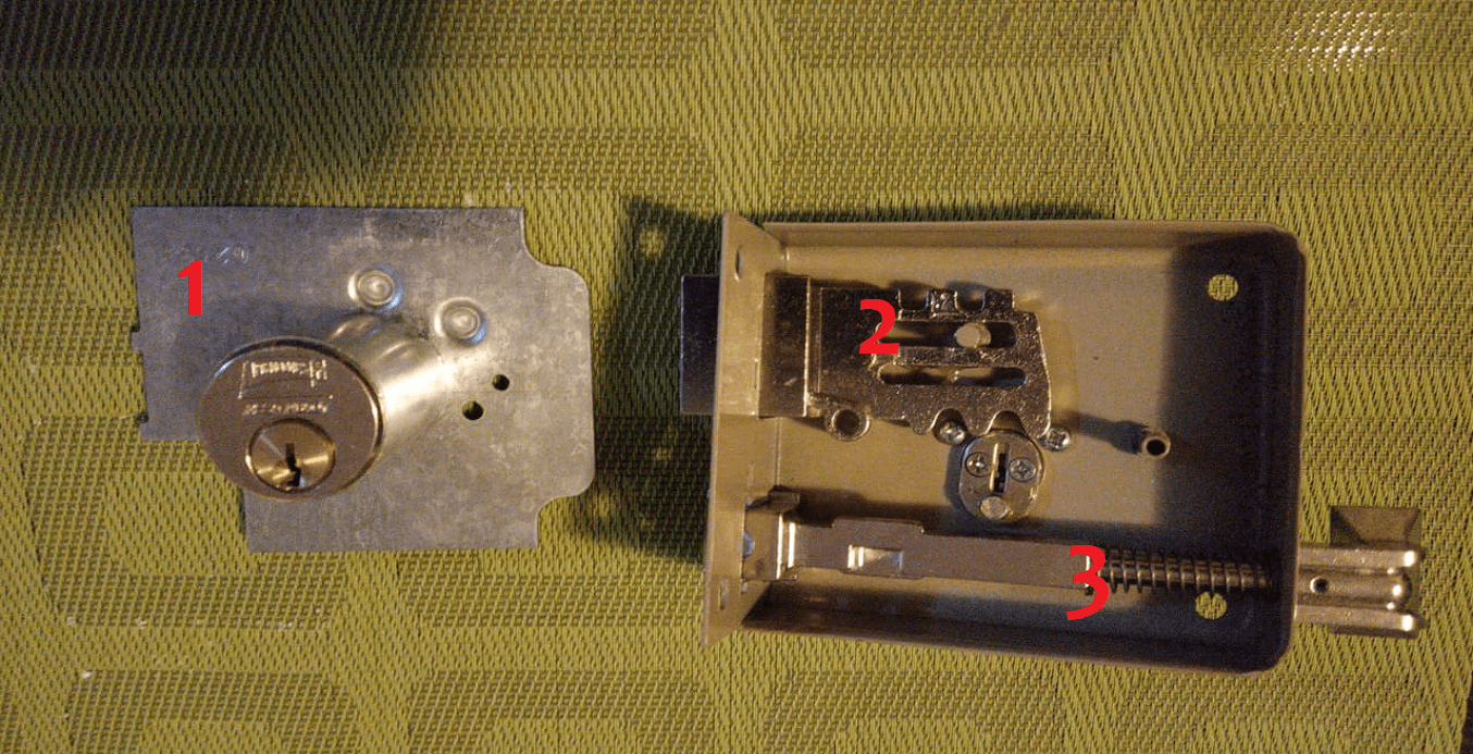 The lock is composed of a mechanism that turns the key to open or close.