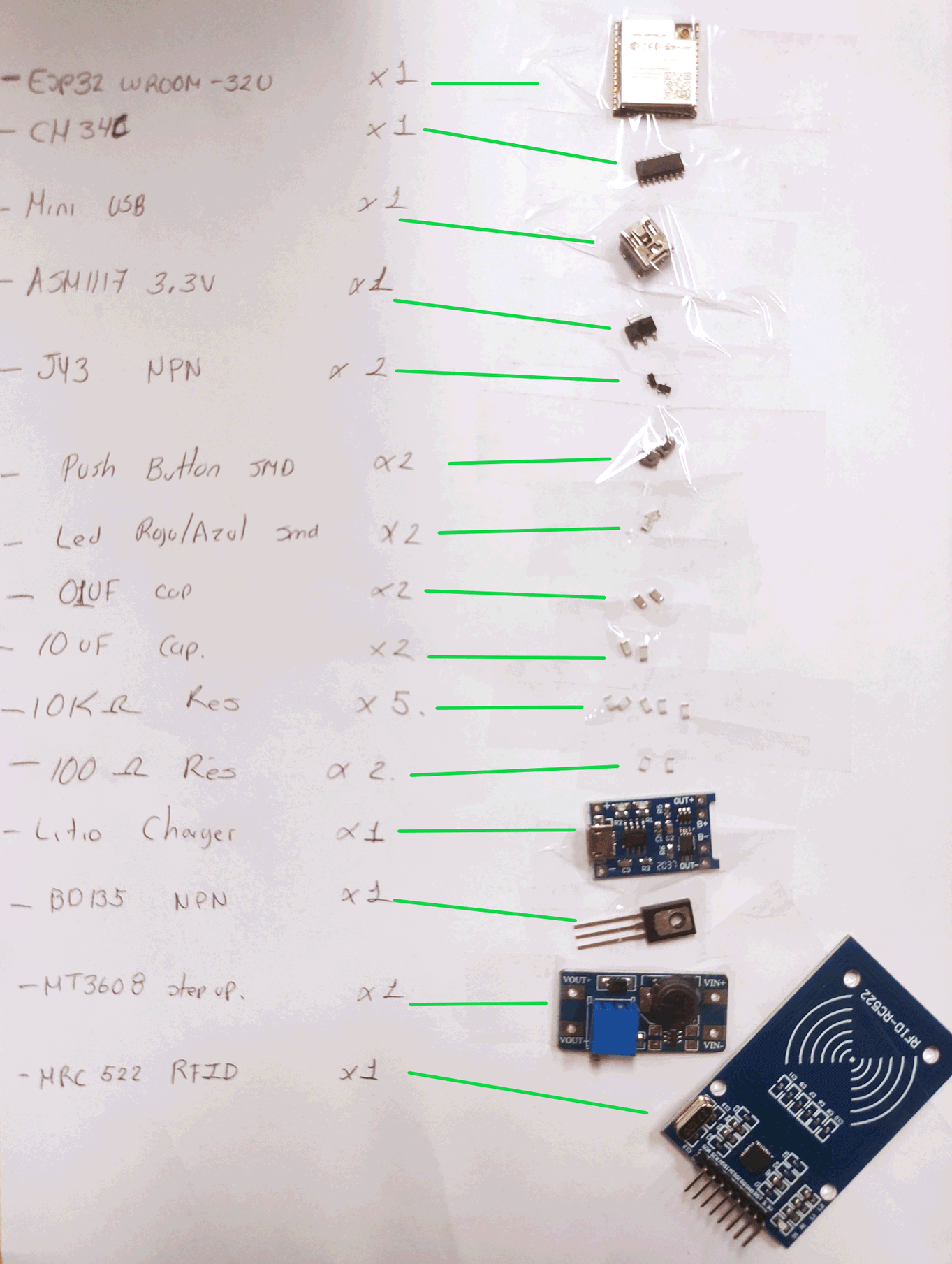 So then, I ended up with a list of component that I will be using for testing