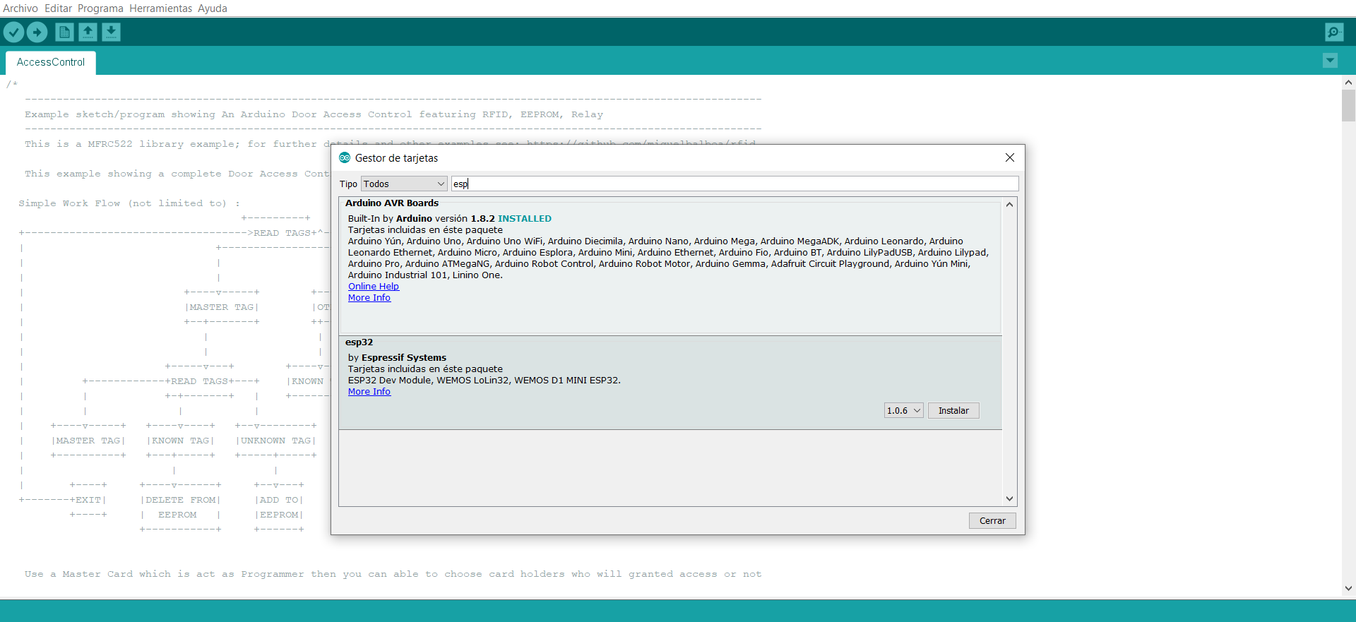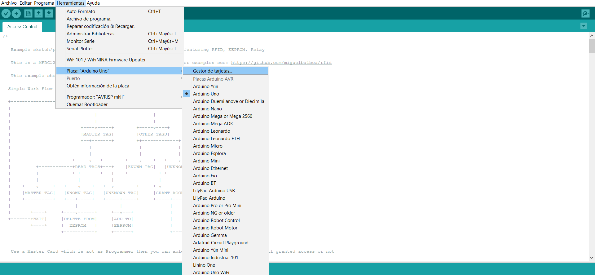 Serial.println("Control de acceso:");