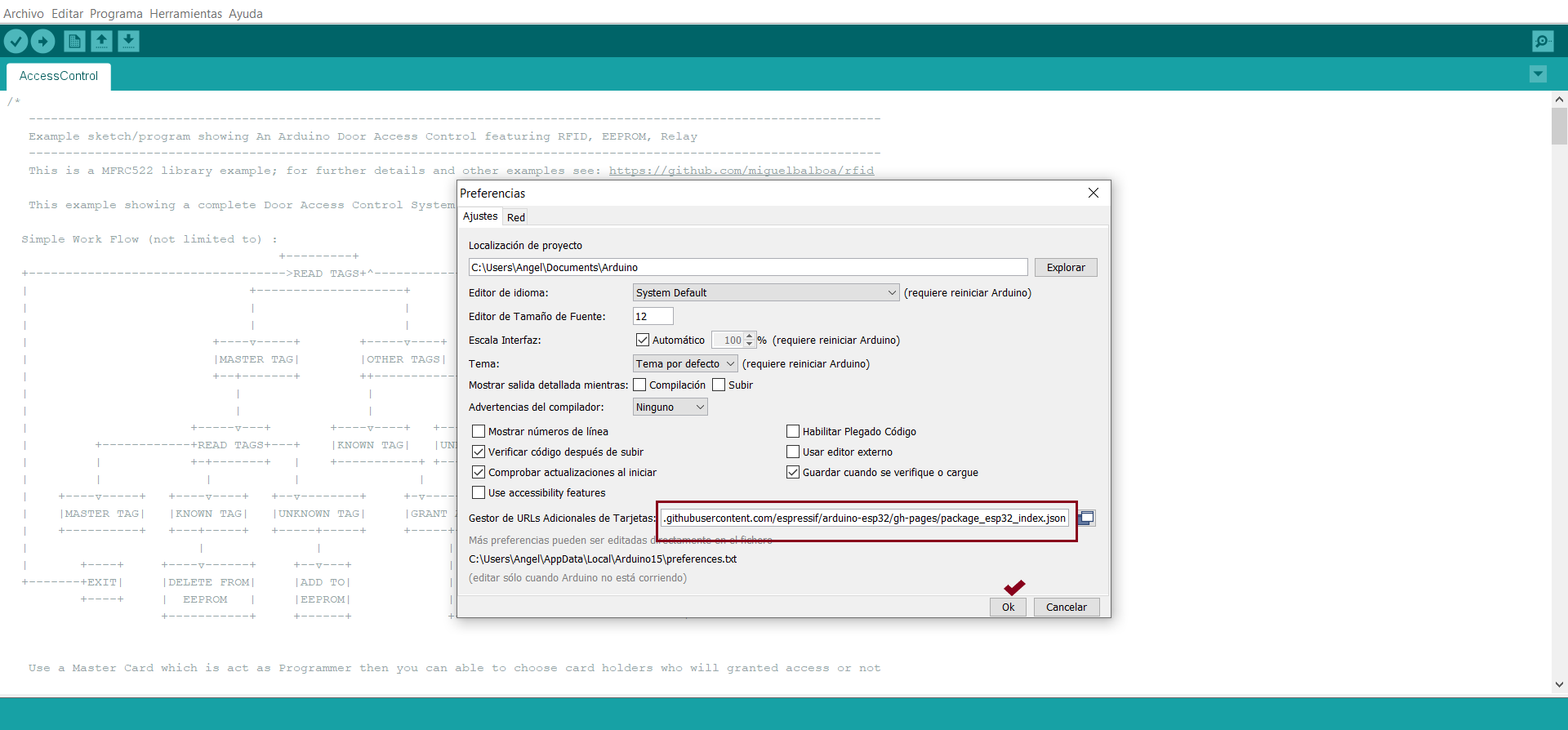byte Usuario1[4] = {0xA3, 0xCC, 0x01, 0x20} ; //código del usuario 1