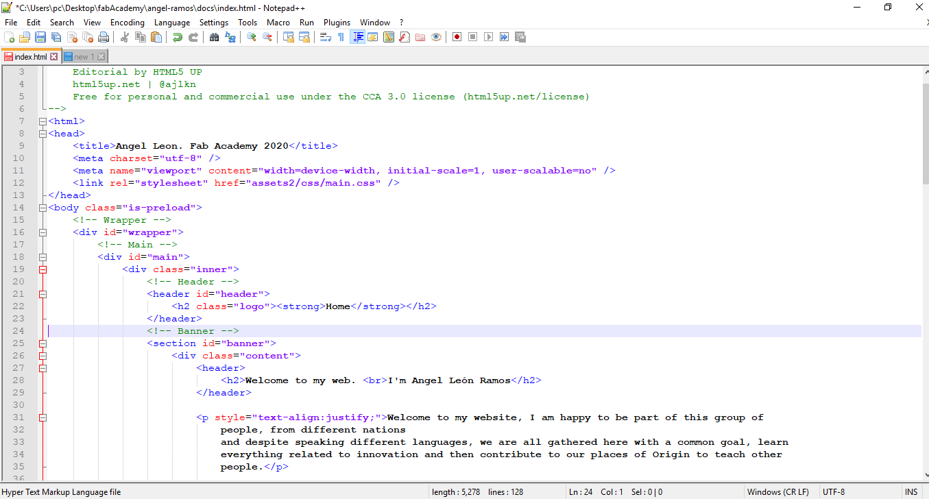 The first step was to choose a software to edit source code, in this case notepad ++