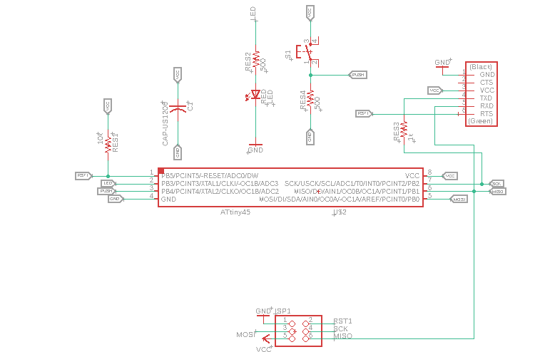 The redesigned version of the ATtiny45 hello.ftdi.45 board, assignment developed in the week "electronic design".