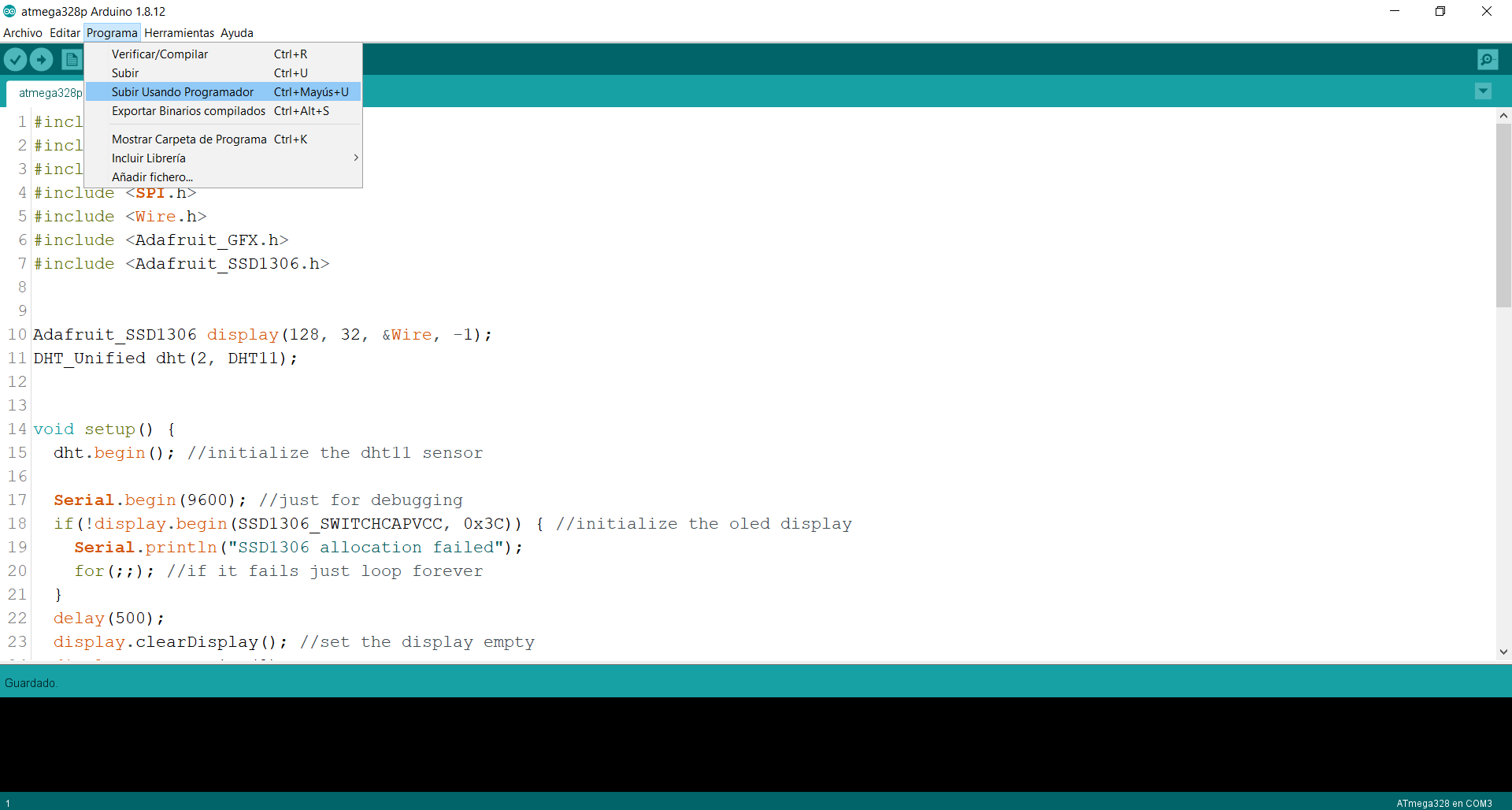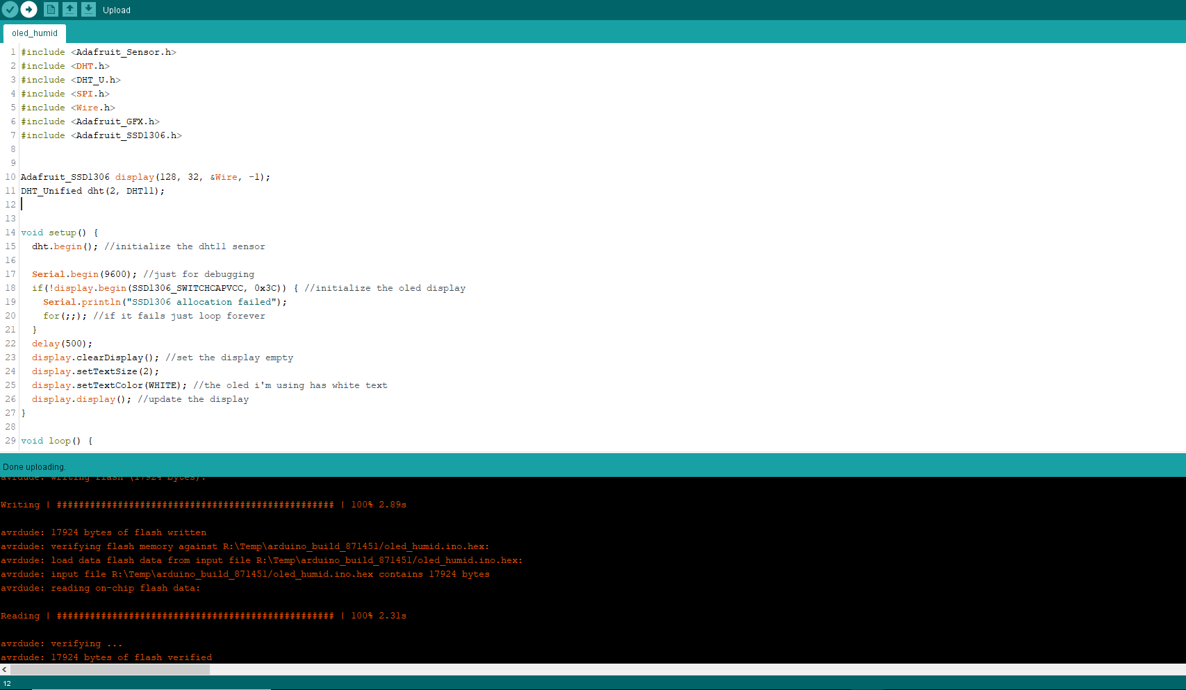 Then I wrote a sketch in the Arduino IDE that uses the following libraries: DHT sensor library by Adafruit Adafruit SSD1306 by Adafruit