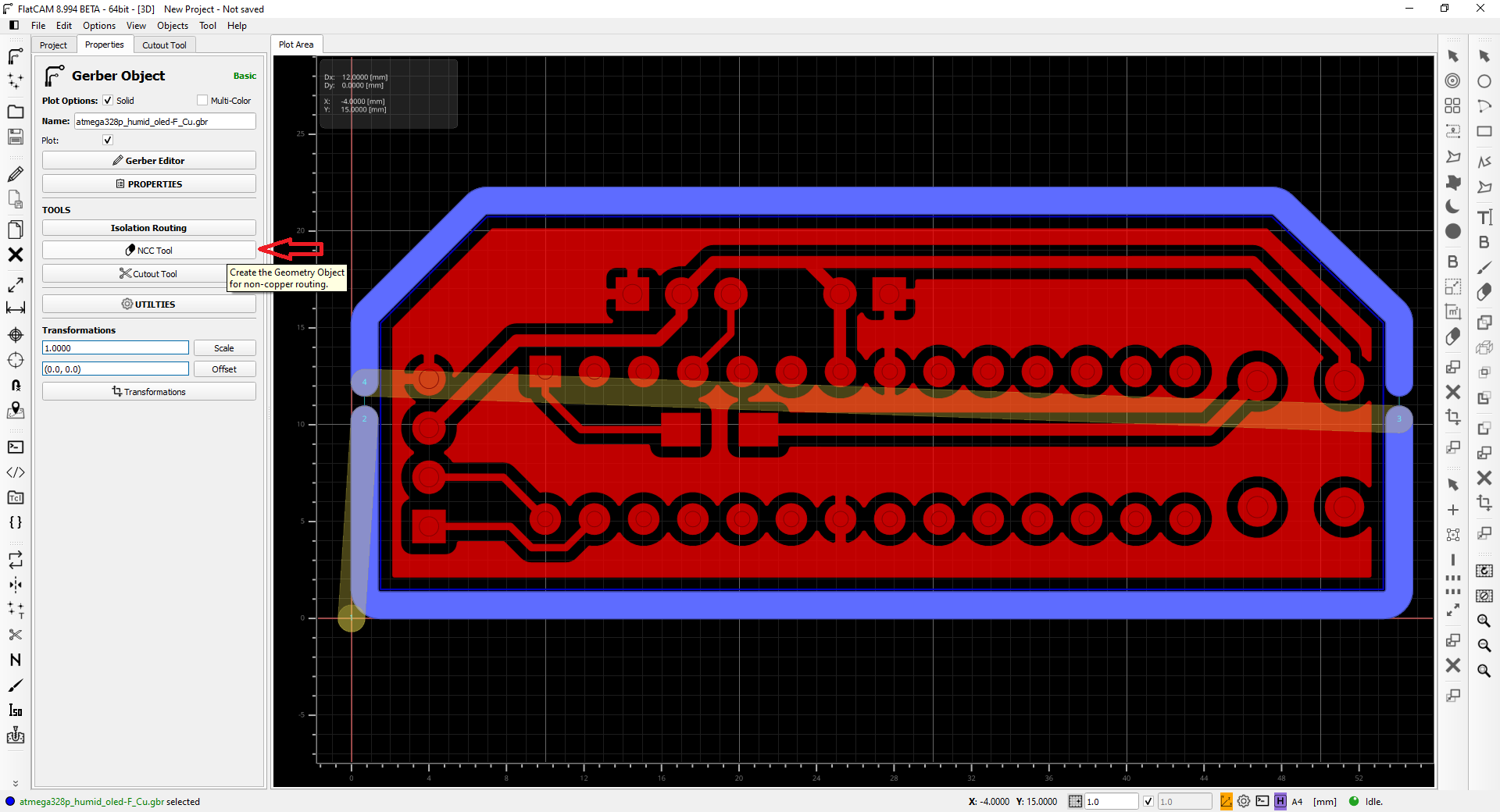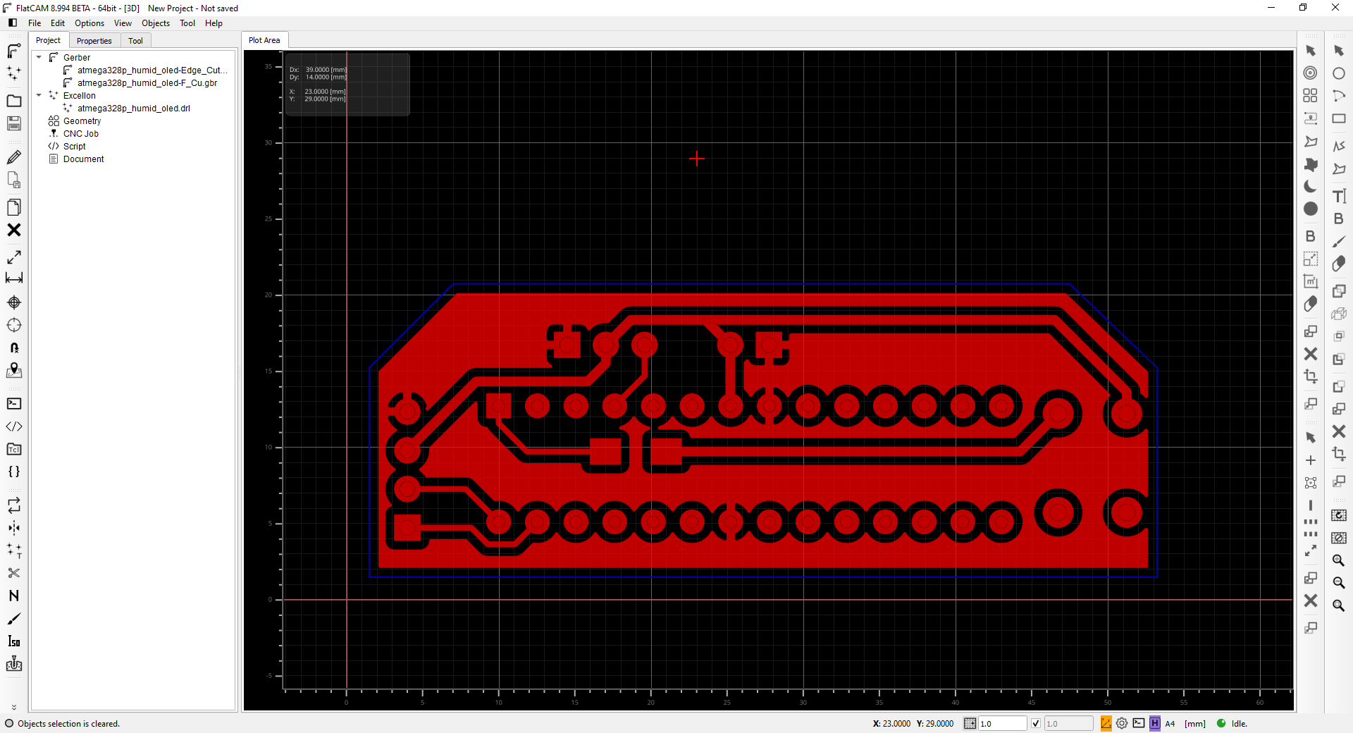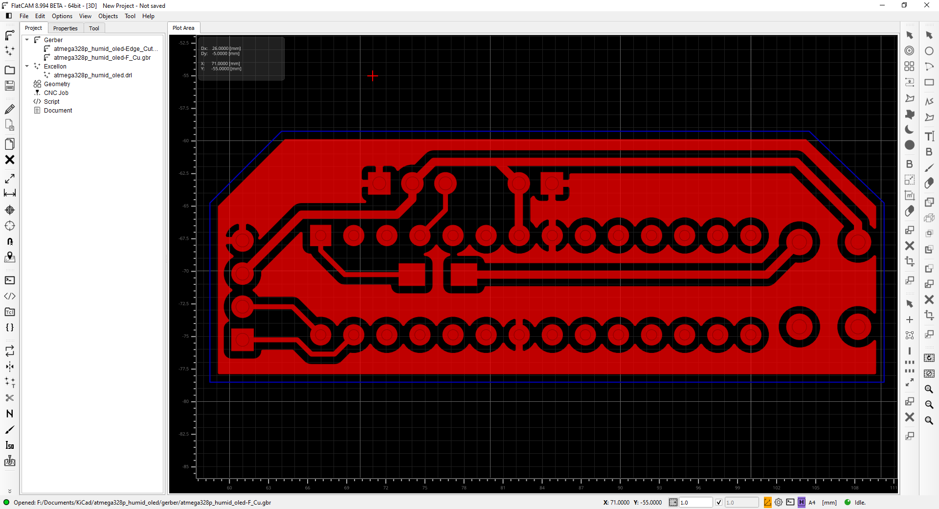 For the routing, I used Flatcam 8.994 beta (get it from here https://bitbucket.org/jpcgt/flatcam/downloads/).