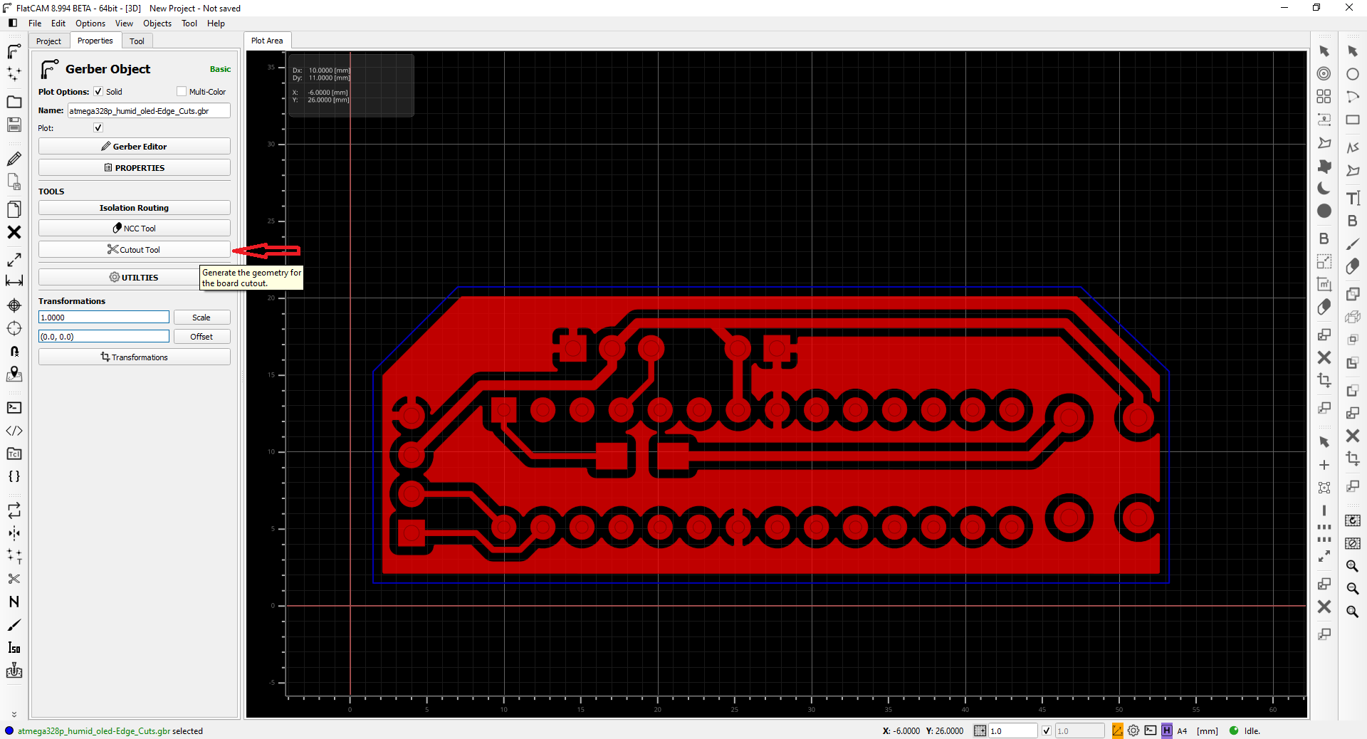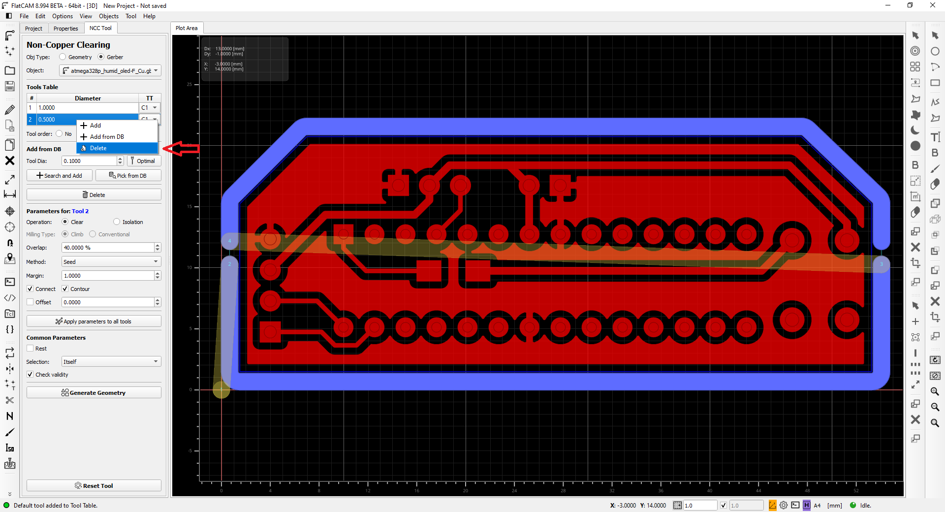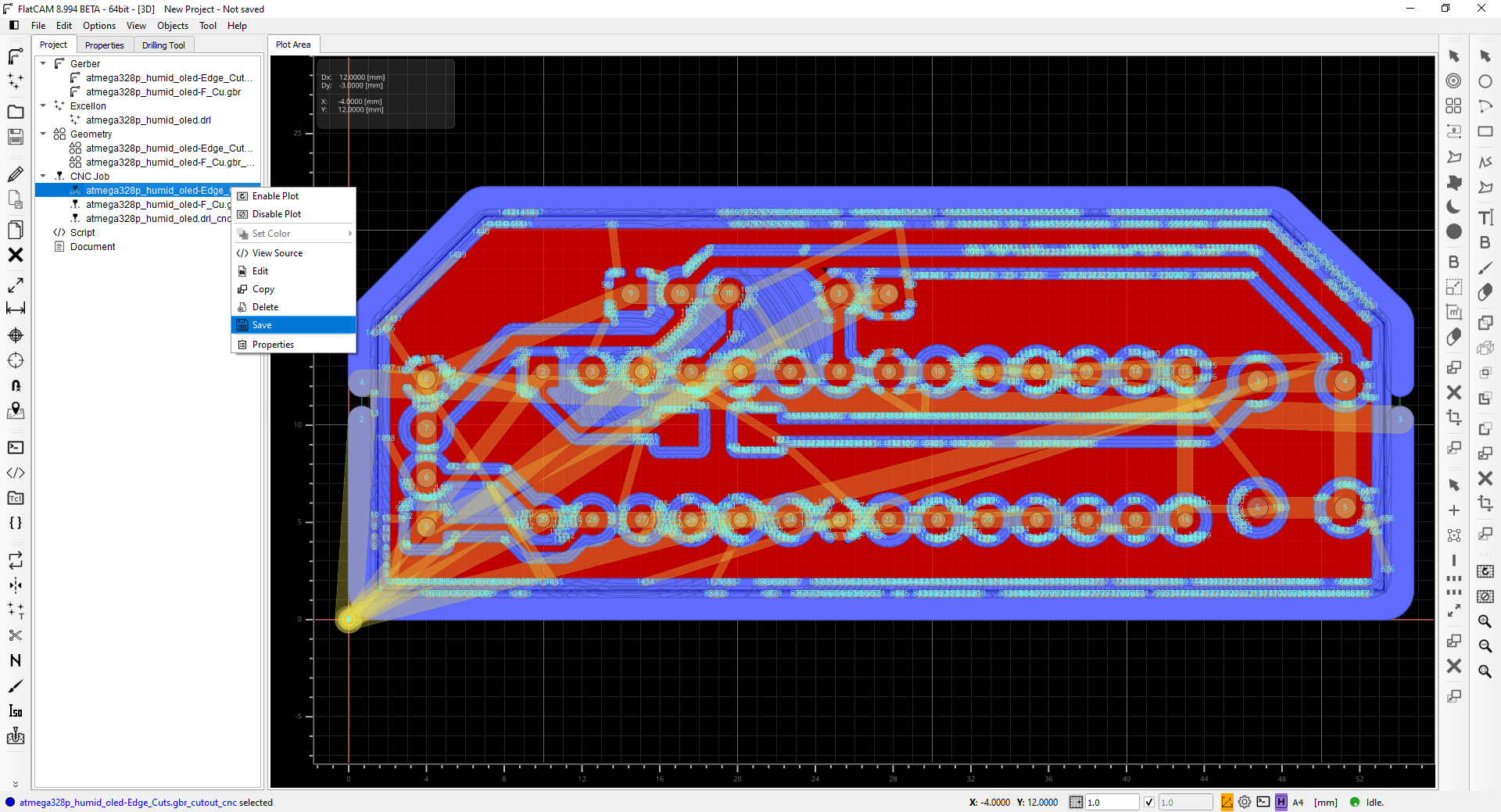 For the routing, I used Flatcam 8.994 beta (get it from here https://bitbucket.org/jpcgt/flatcam/downloads/).