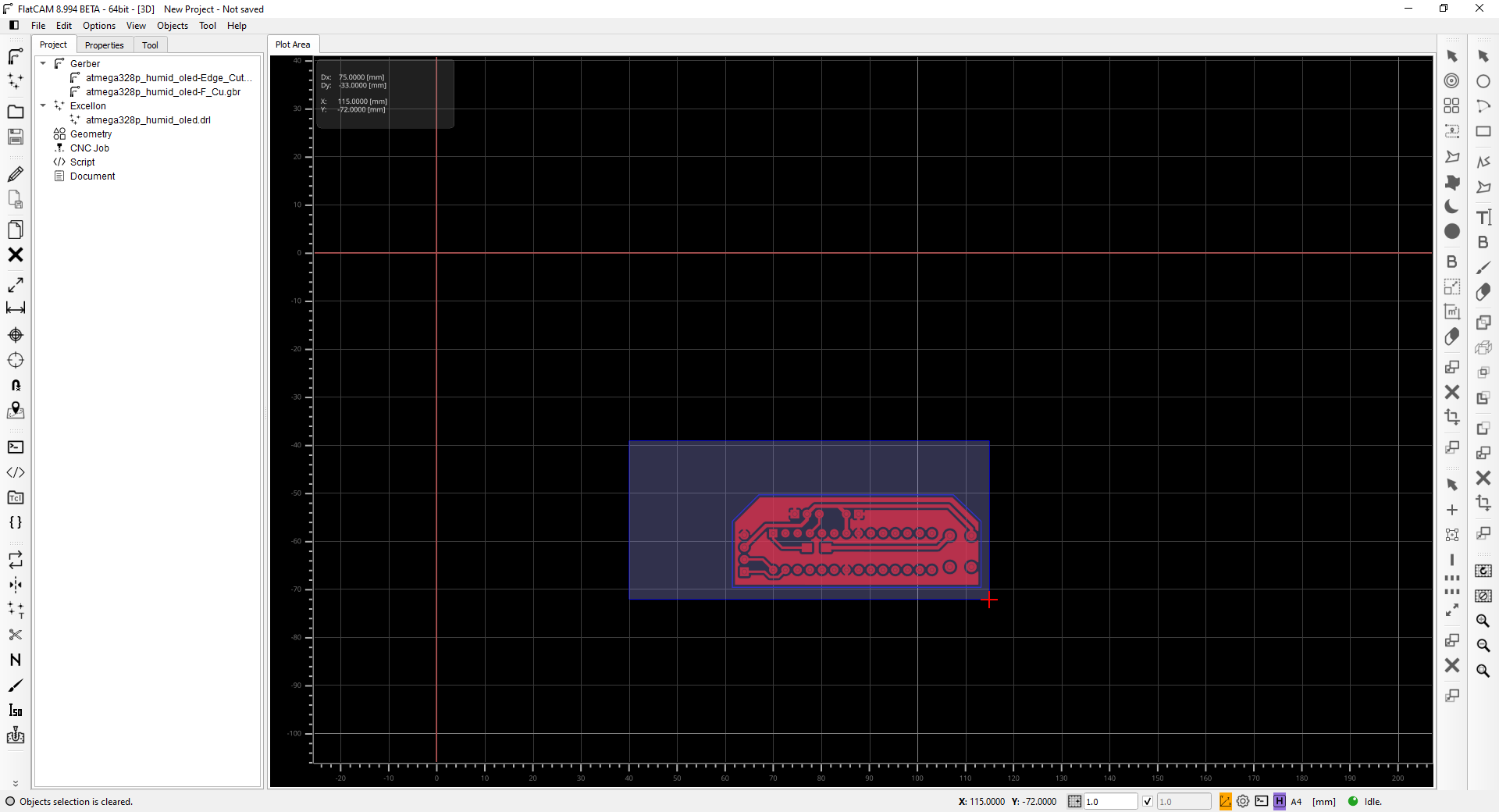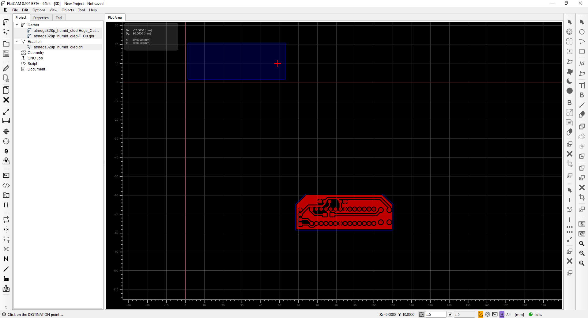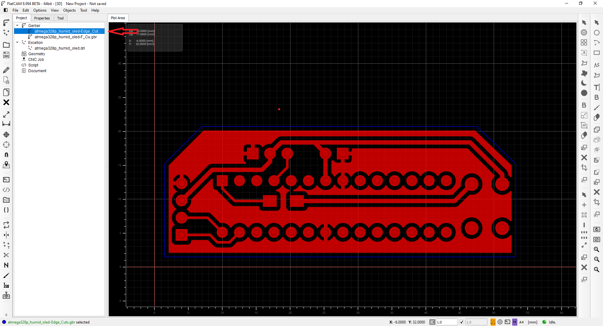 First, open FlatCAM and drag the files that got generated when plotting (extension .gbr and .drl)