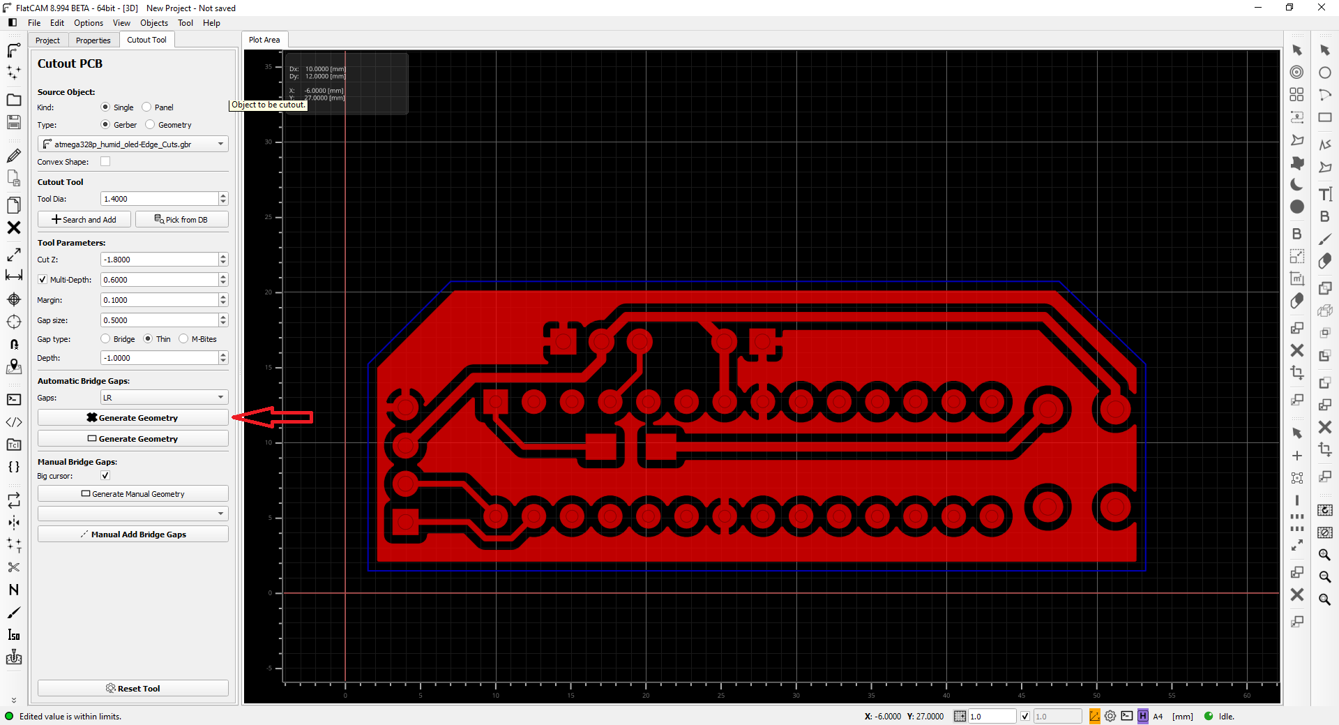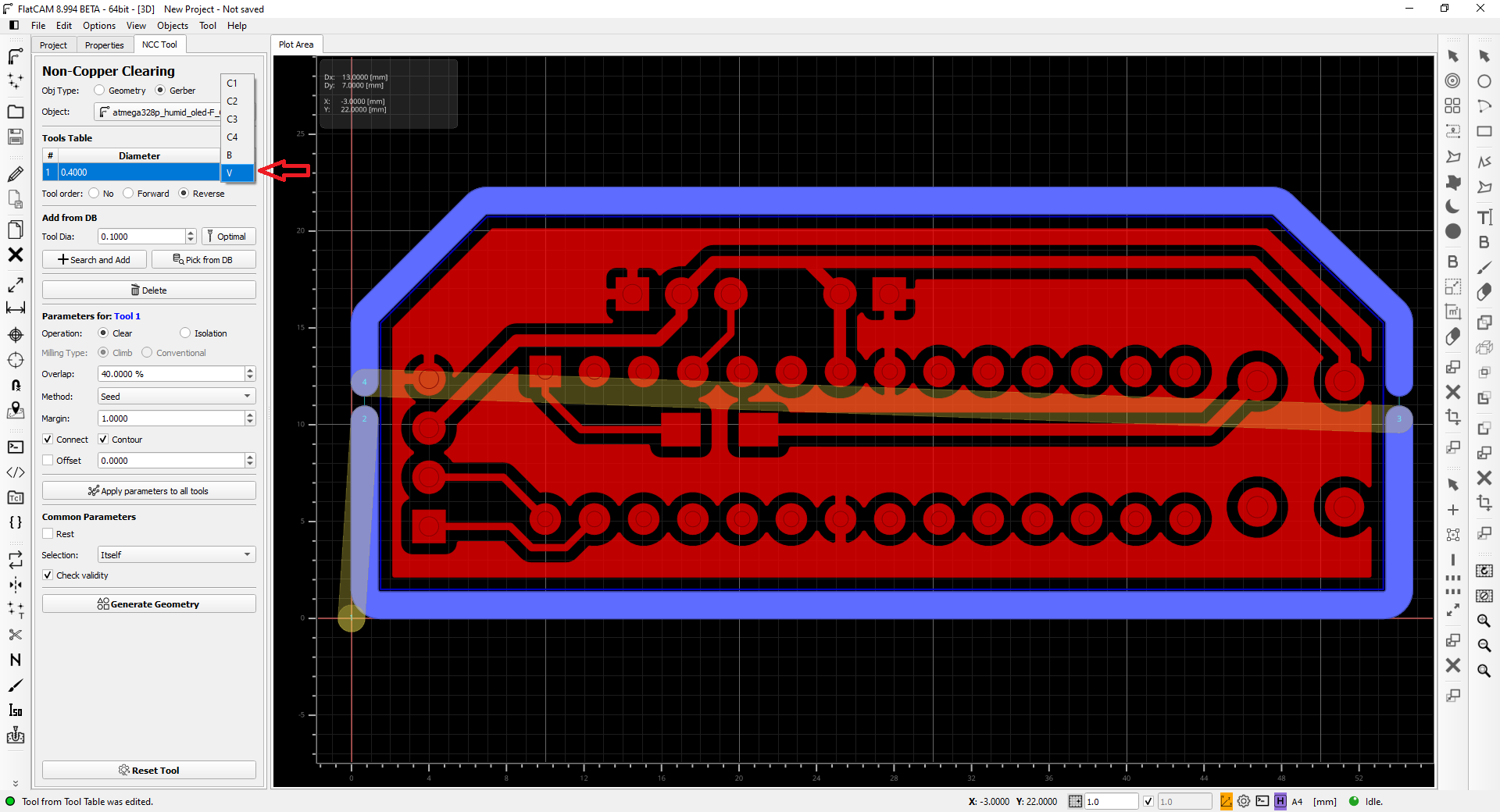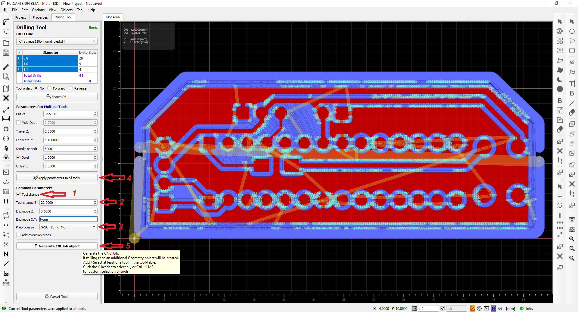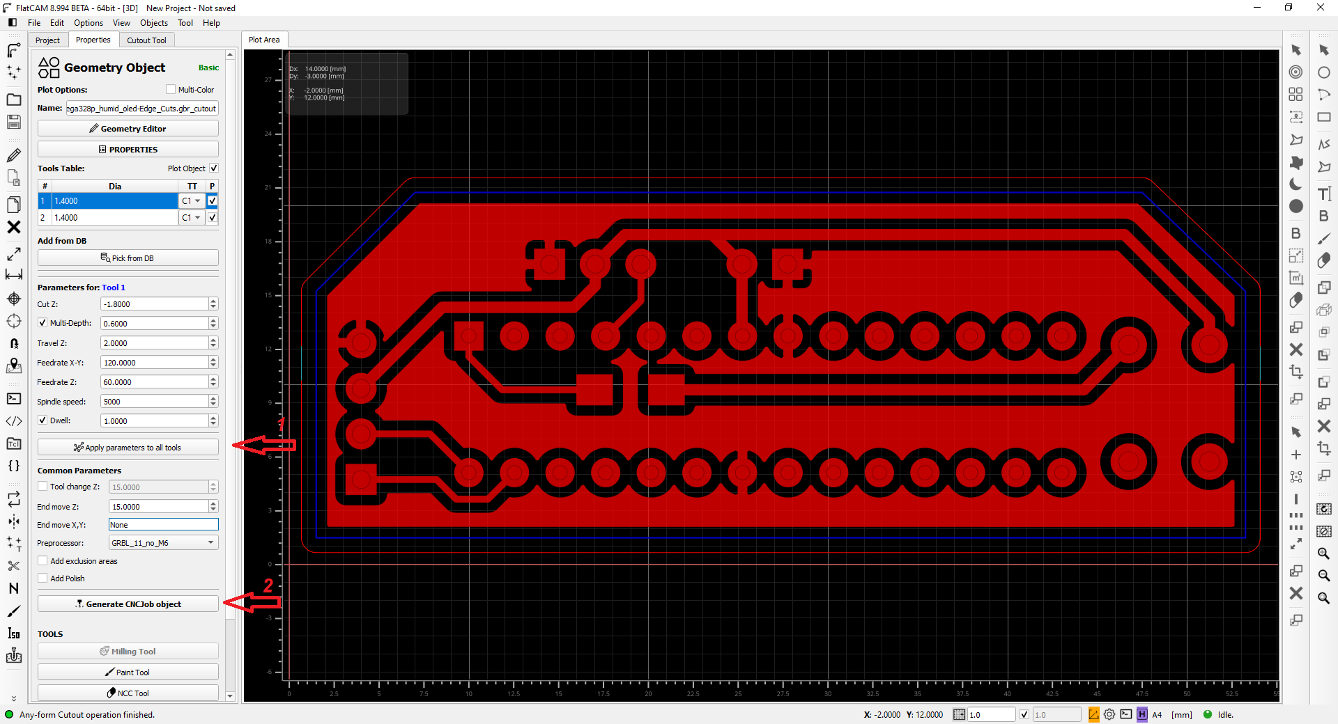 Finally, just click on "Apply parameters to all tools" and "Generate CNCJob object"