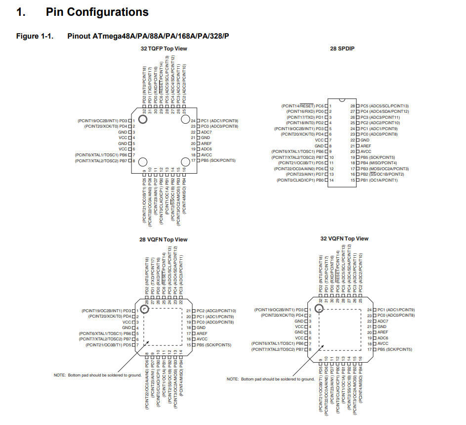 Then I had to choose what kind of package type I was going to use for this board, by taking a look at the datasheet (https://ww1.microchip.com/downloads/en/DeviceDoc/ATmega48A-PA-88A-PA-168A-PA-328-P-DS-DS40002061B.pdf p.12) we find available package formats for this microcontroller