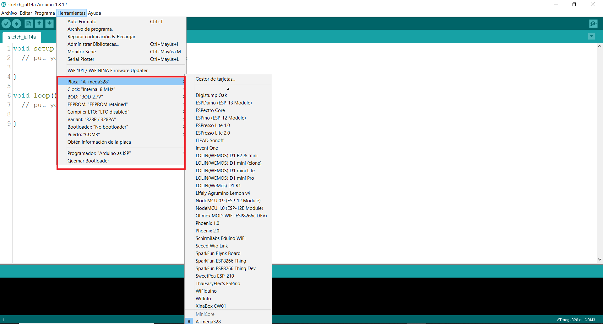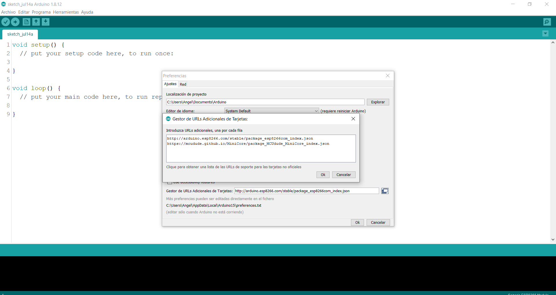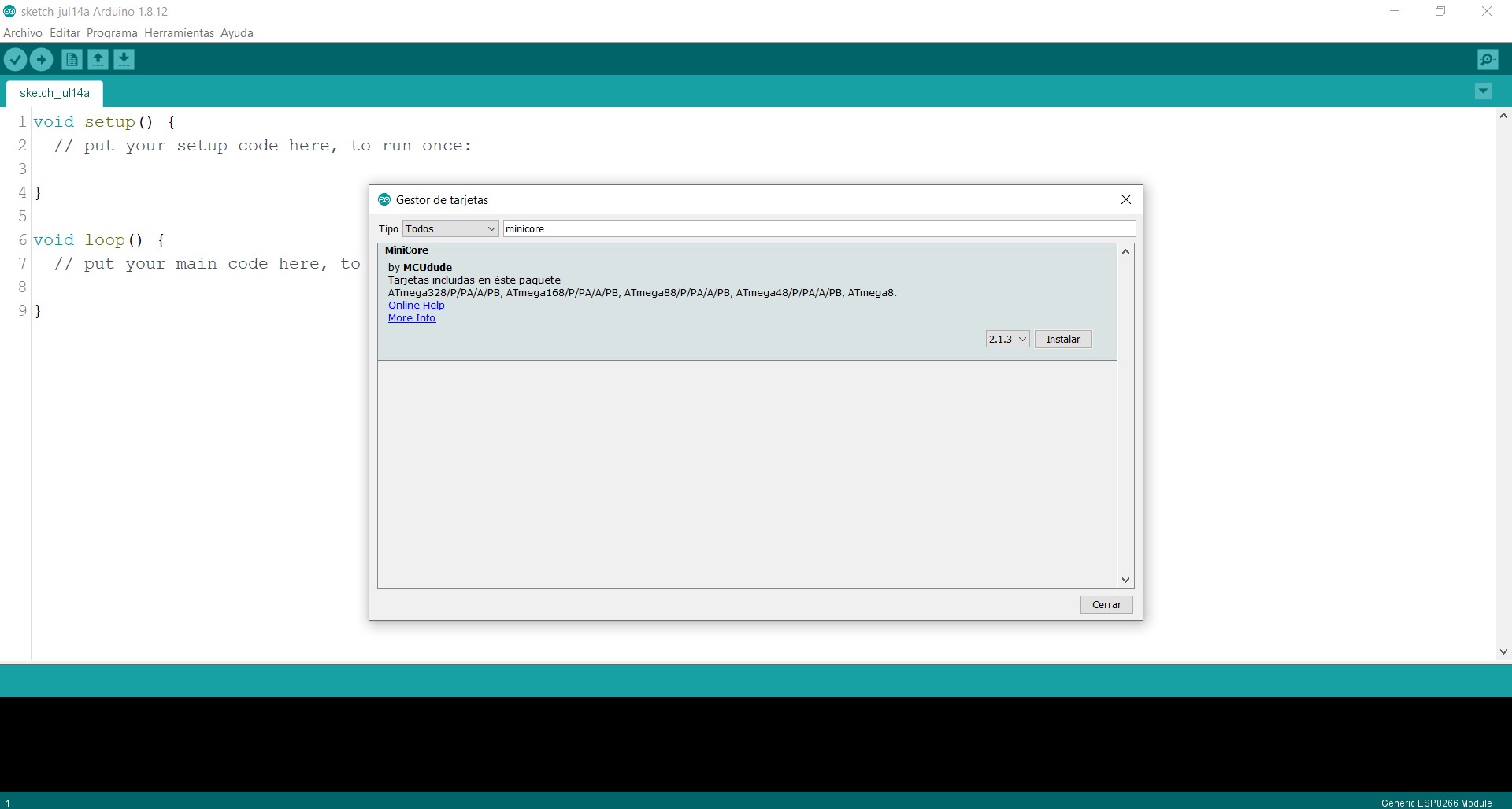 In the Arduino IDE, click the File menu, select preferences, and add the URL https://mcudude.github.io/MiniCore/package_MCUdude_MiniCore_index.json.