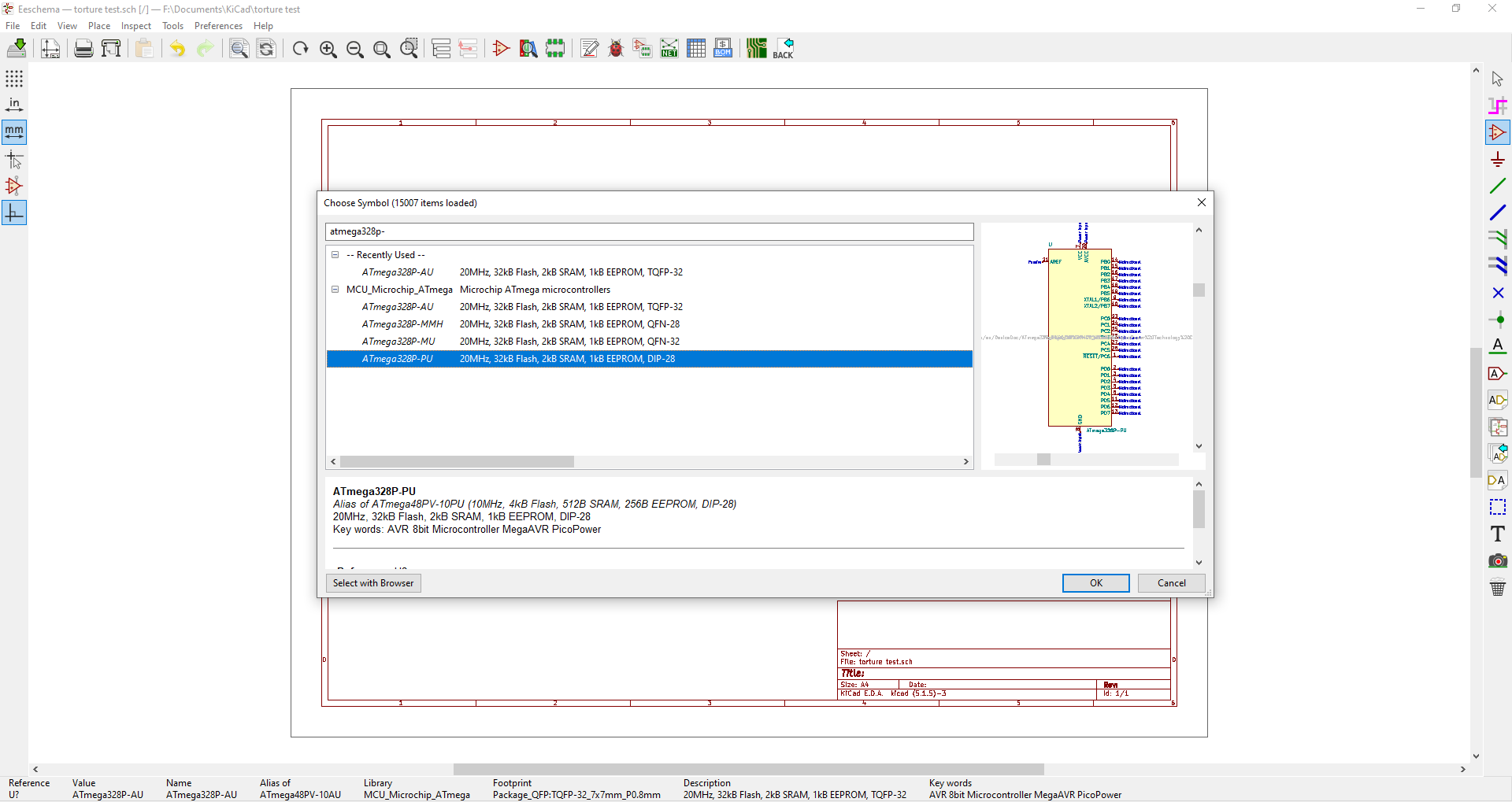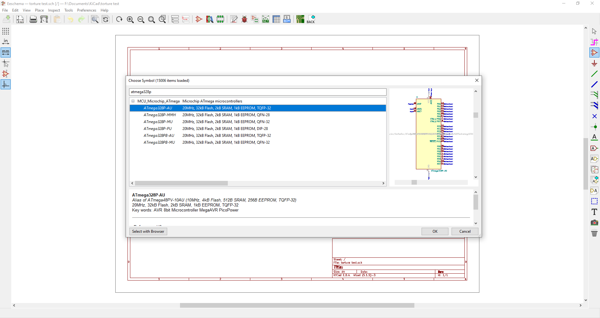 So, with 32-TQFP and 28-SPDIP left the only thing left to do is check if they are millable or not, so I just created a new KiCad project where I put both MCUs package formats