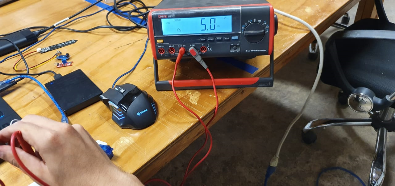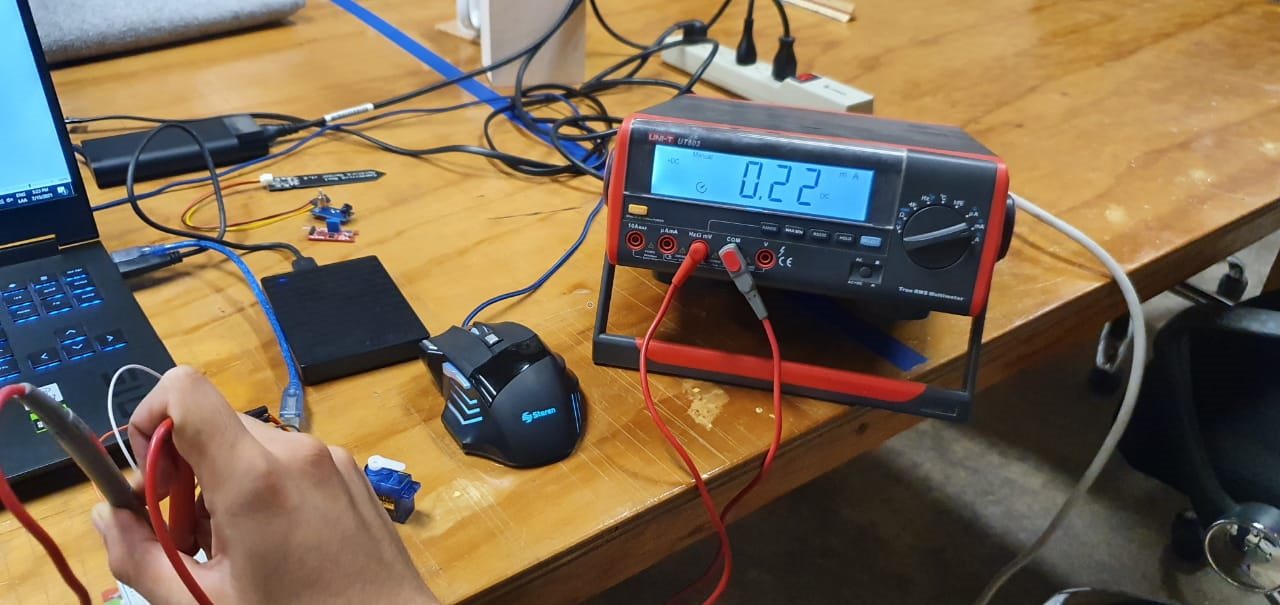 Now, to carry out the measurement we will use a multimeter, which we will connect and put in direct current analysis. We continue to measure the energy consumption of the servo, which based on its power supply at its voltage terminal, we can guess that it will be 5 volts.