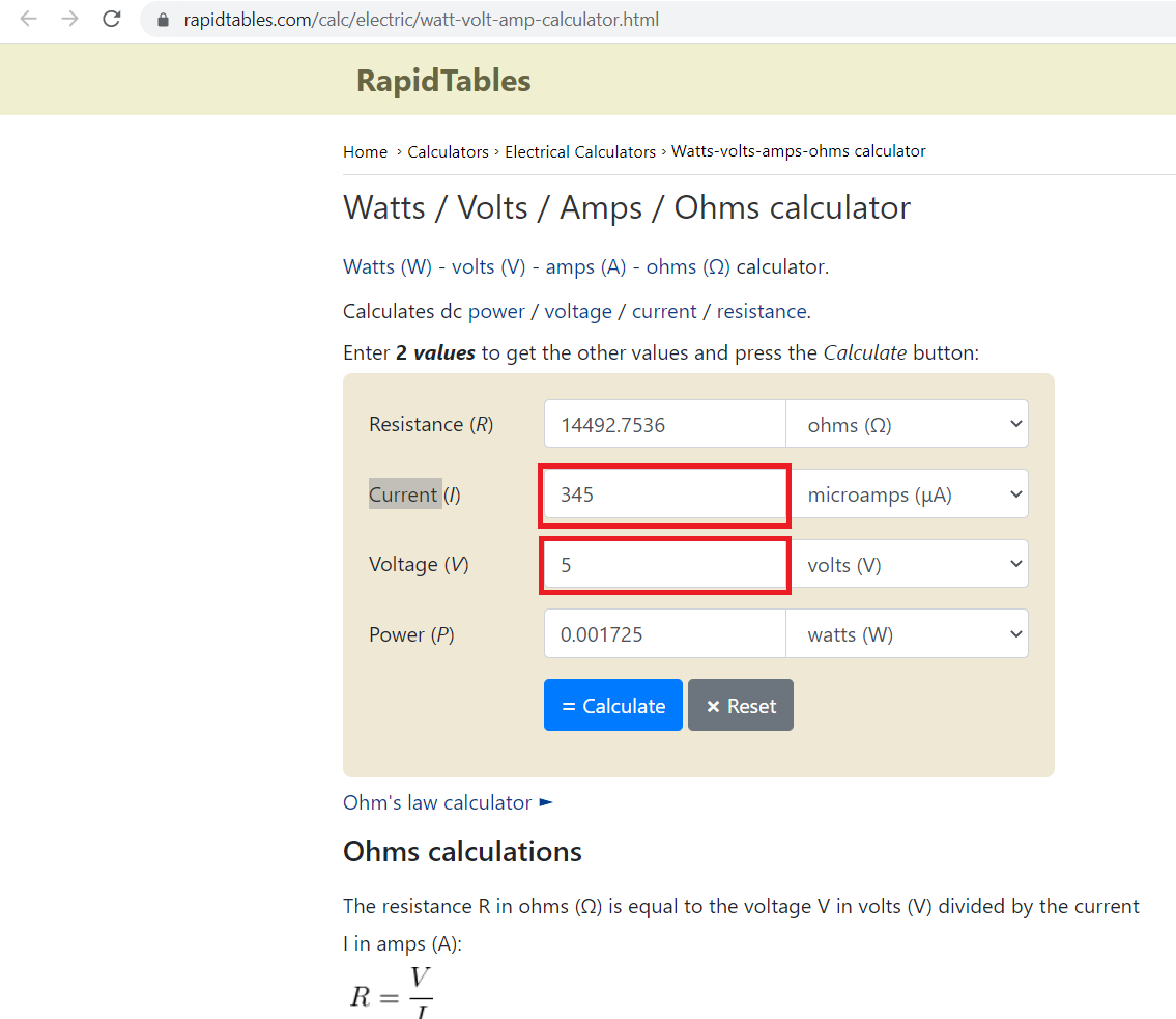 0.345 x 10 ^ -3 x 5 Volts = 0.001725