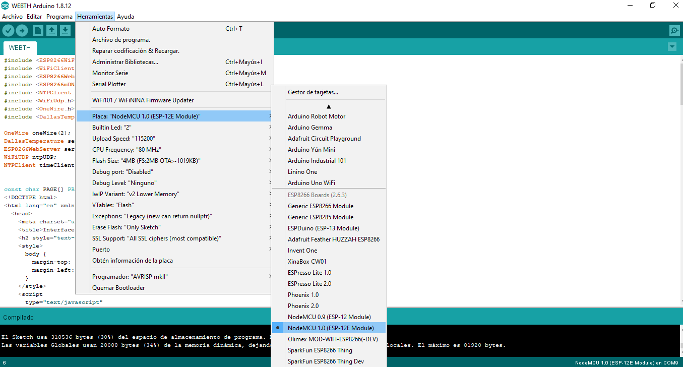 - Finally, the html code must be integrated into the arduino code so that it is stored in the memory of esp8266 and does not depend on a web server.