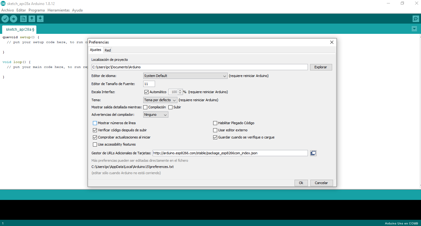 Configure the arduino ide to recognize the nodemsu module, go to the