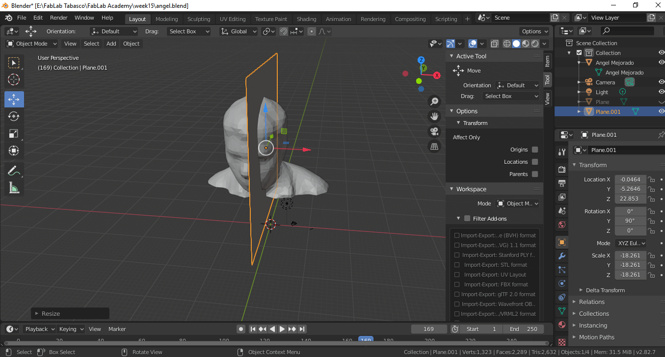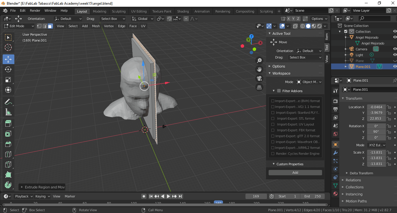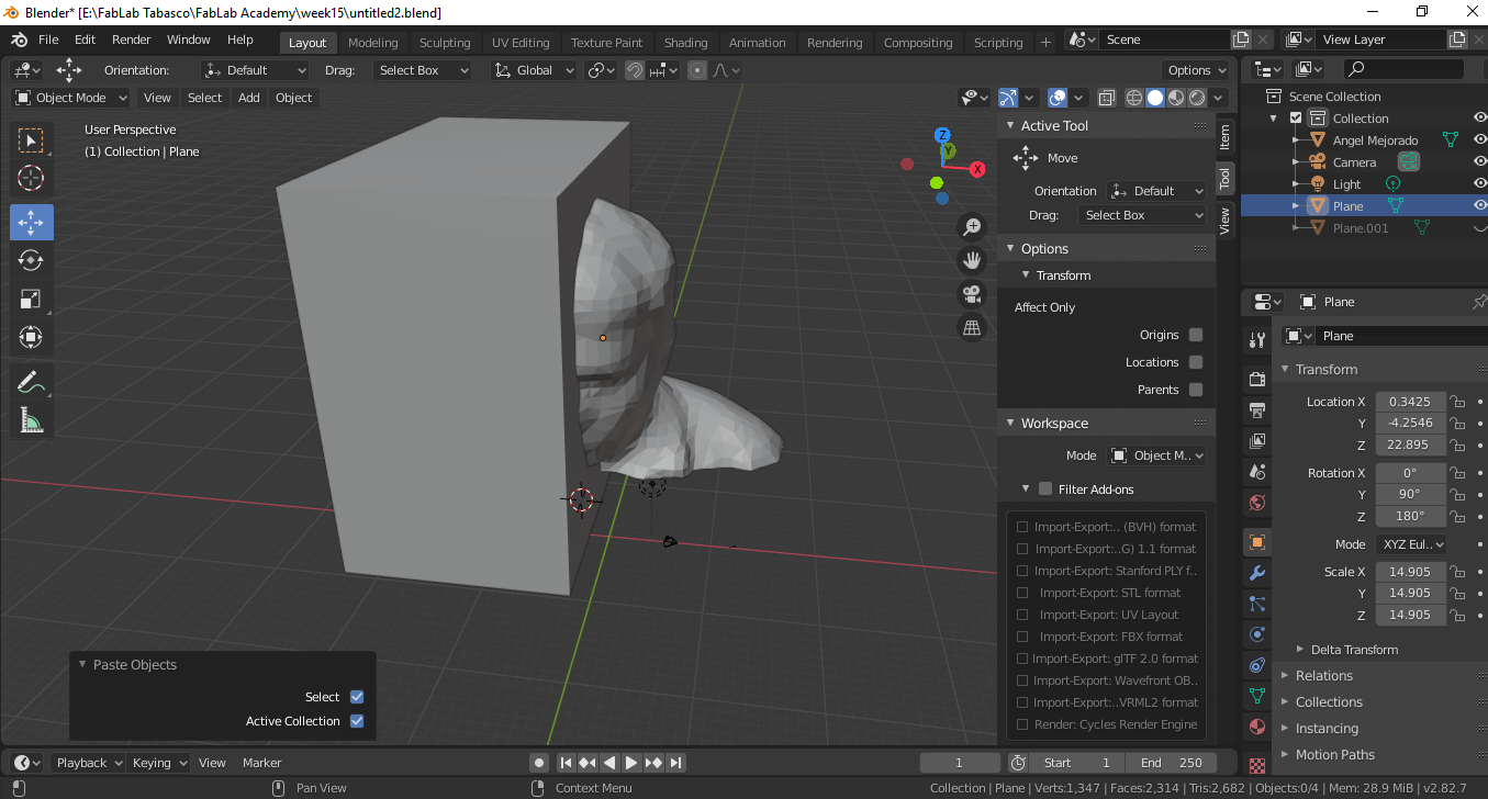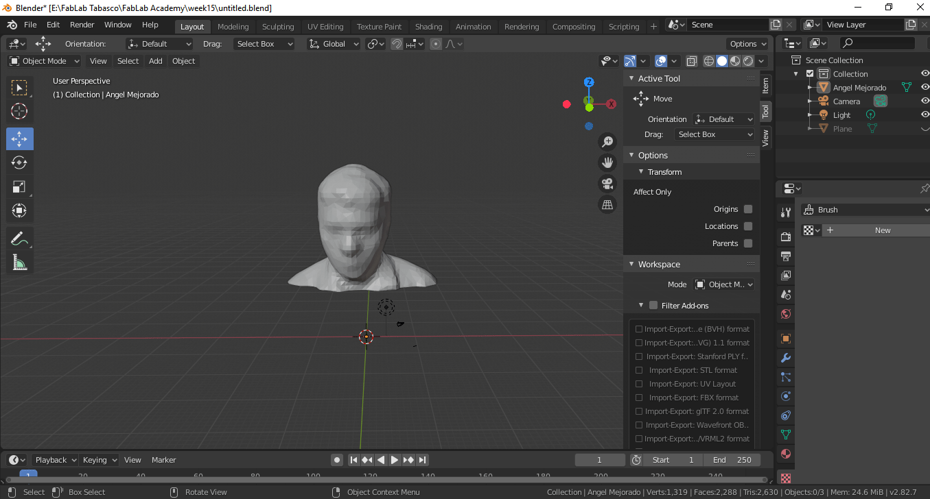 For this assignment I am going to design a two-sided mold, taking as models the 3d scan of my person that I used in the week of printing and 3d scanning for it I use Blender.