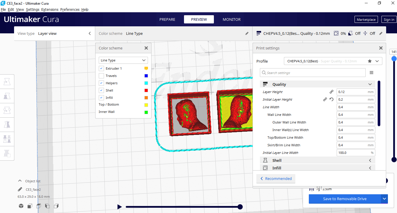 I am going to use ultimaker cura, to which the previously exported .stl file can be imported in order to create the model using 3d printing. I use a 3d printer ender3, you just have to adjust the values and ready