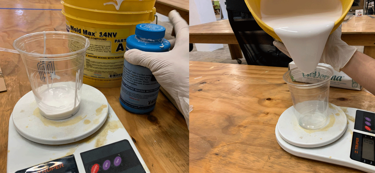 Prepare the silicone in the ratio 100A: 10B (110grs in total for this piece).