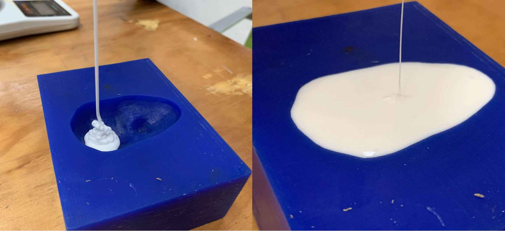 Pour into the wax mold, being careful not to spill.