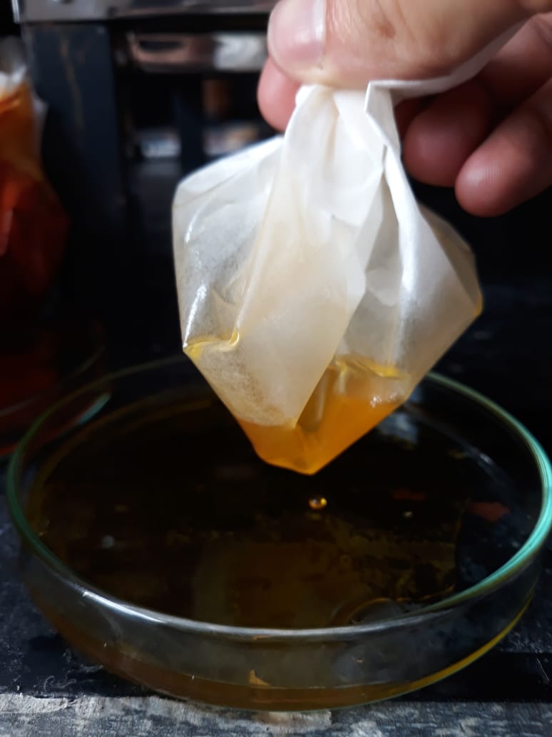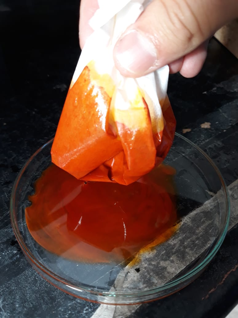 Also we used a normal pot to prepare everything. An important note, we used coffee filter to avoid impurities on our dyes. .