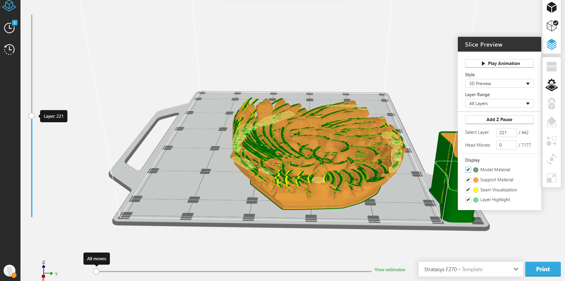 As in digital in Digital Bodies week I decided to use Stratasys F270 to print. Because this printer has two extruders that print on model material and support material. Because all supports I need to print on FDM this complex shape I am sure this is the best chose.
