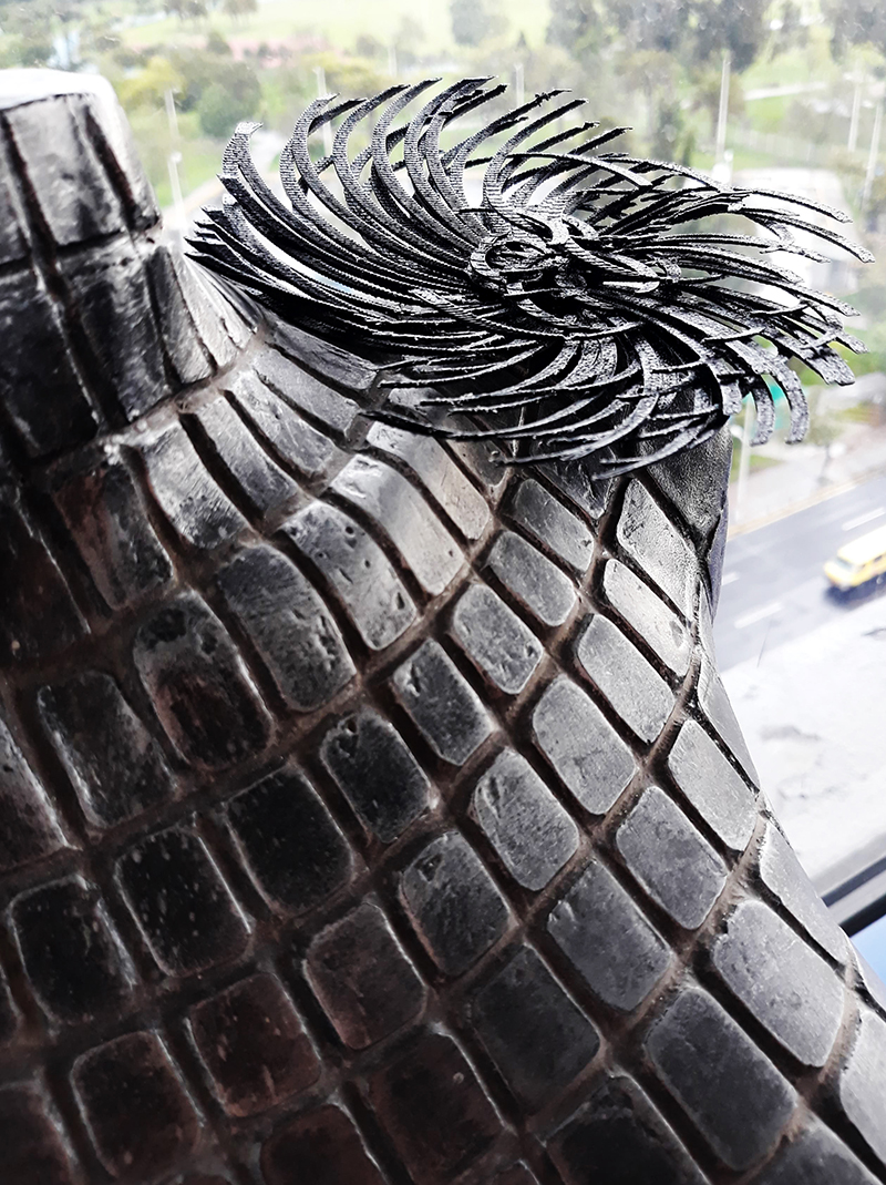 Fortunately the peace that I designed was enough printed for this exercise to prove the concept. I am really happy for the result because it perform as a “computational made fabric” that was the idea. In this sense you may find on gifs below that it is performing with a nice flexion and it can be used as a nice accessory for a garment.