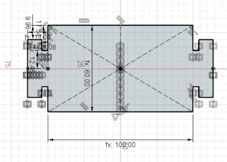 component and began my sketch with a rectangle and my dimensions. I added a few new dimensions related to these key holes in my table and used them to